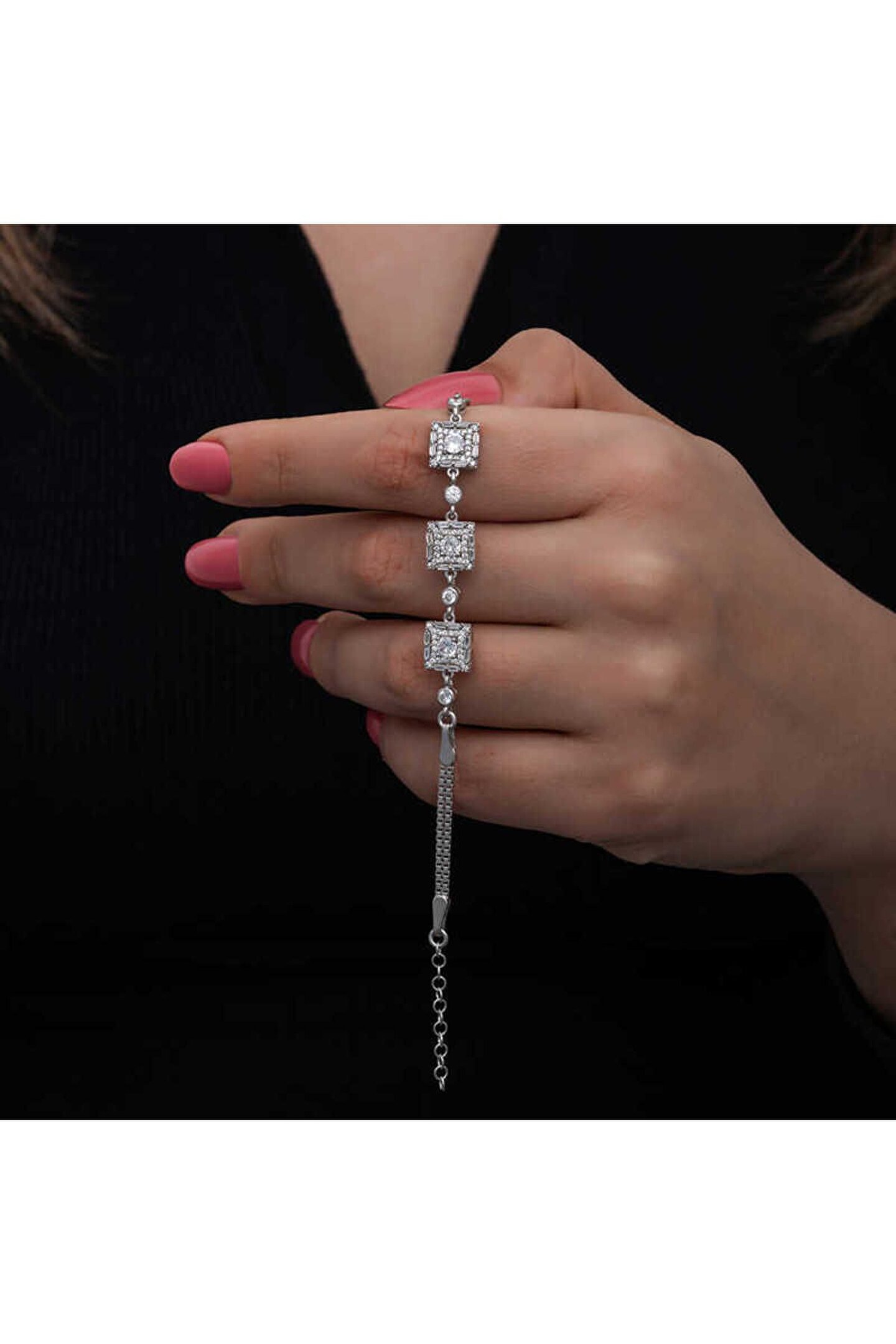 Samur Parti Parti Aksesuar & Kostüm 925 Ayar Gümüş Baget Taşlı Kadın Bileklik