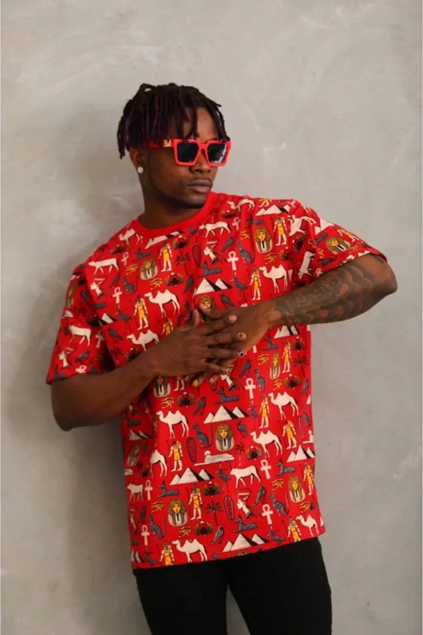 Emu Wear Unisex Oversize Baskılı Bisiklet Yaka T-Shirt - Kırmızı