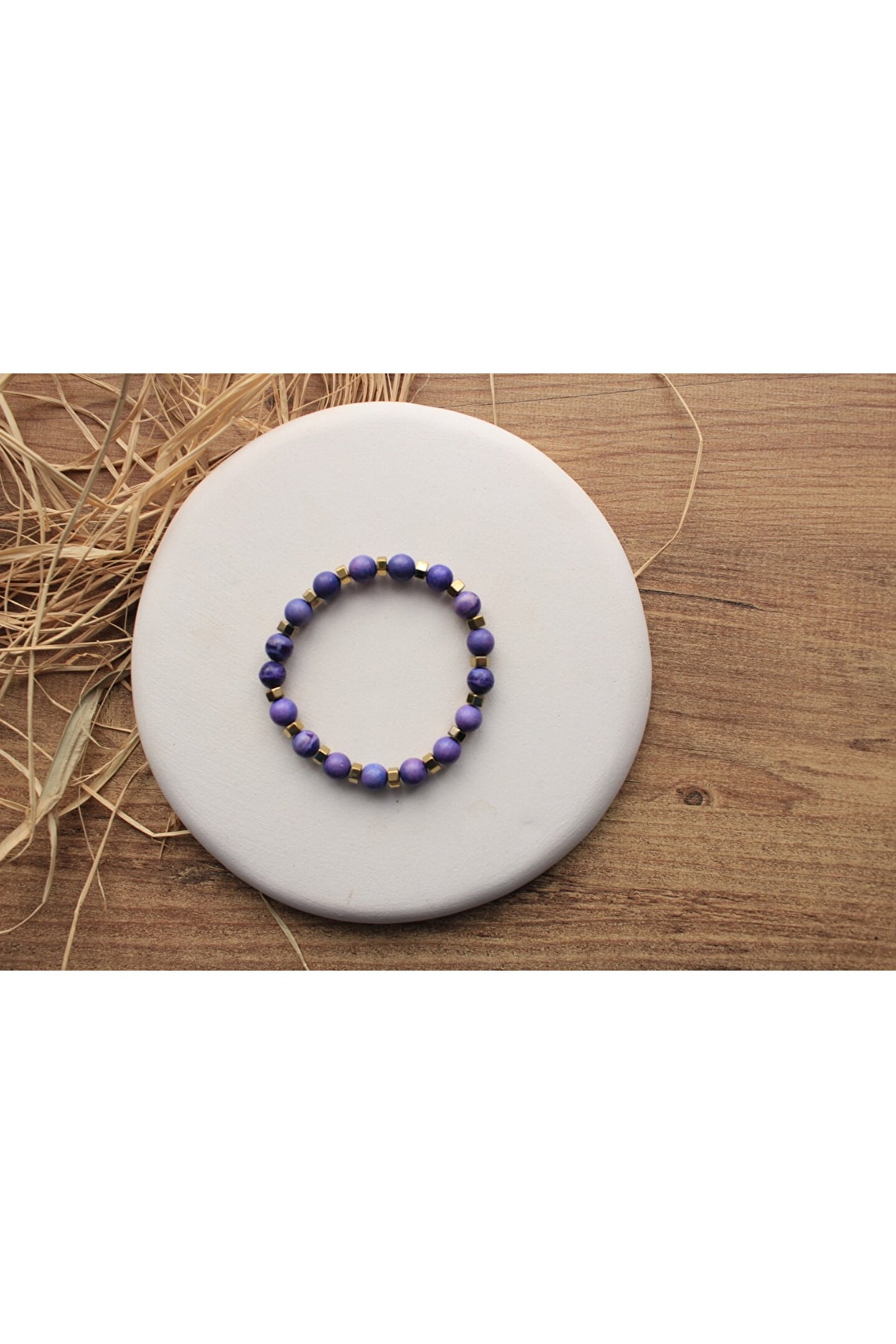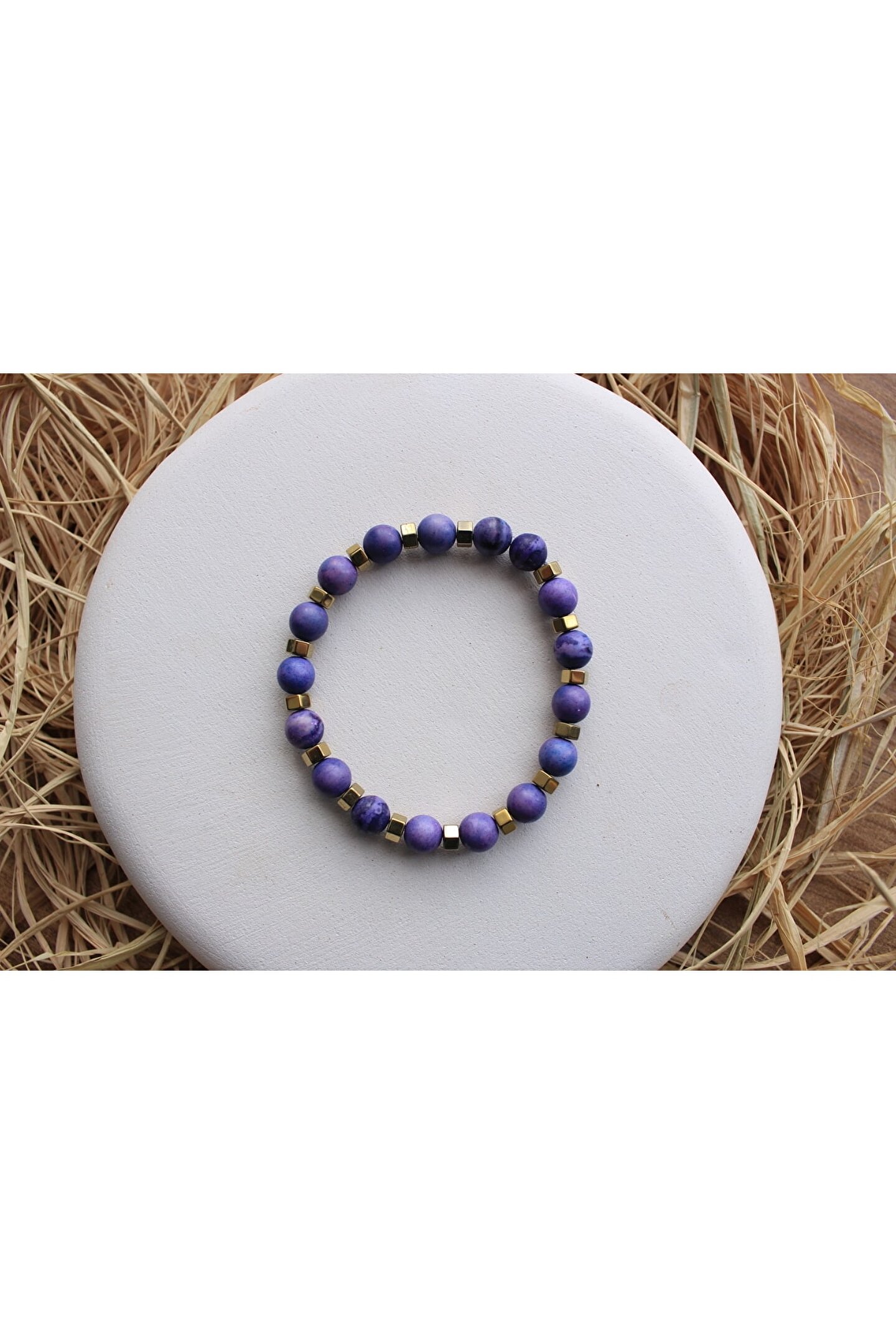 - Doğal taş kullanımı sayesinde her bileklik benzersiz ve otantik bir görünüm sunar; - Mor kuvars ve sarı hematit kombinasyonu, şıklığı ve zarafeti bir arada barındırır; - Doğal taş materyali ile hem dayanıklılık hem de estetik bir dokunuş sağlar; - Bileklik, günlük kullanım için idealdir ve her türlü kıyafetle uyum sağlar;