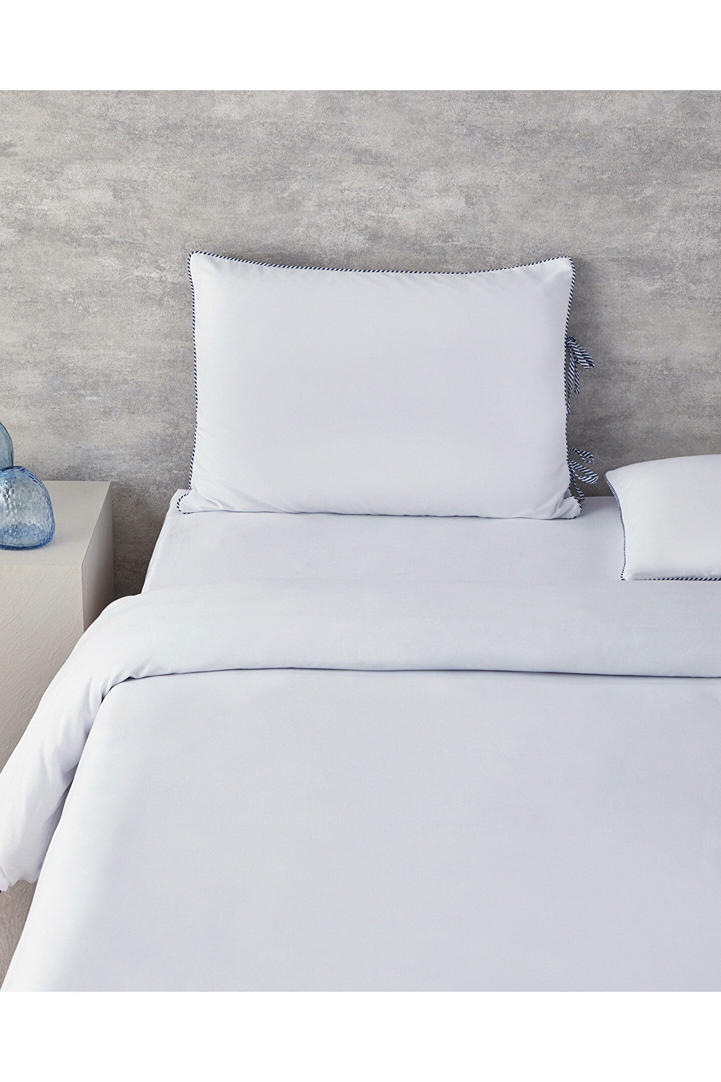 Rahatlatıcı bir uyku deneyimi sunan çift kişilik nevresim takımı, beyaz ve lacivert renkleriyle şık bir görünüm sağlar.; Lastikli çarşaf tasarımı, yatağınızın üzerine mükemmel uyum sağlayarak sabit kalmasını ve kaymayı önler.; Düz deseniyle sadelikten yana olanların tercihi olup, her yatak odasına kolayca uyum sağlar.;