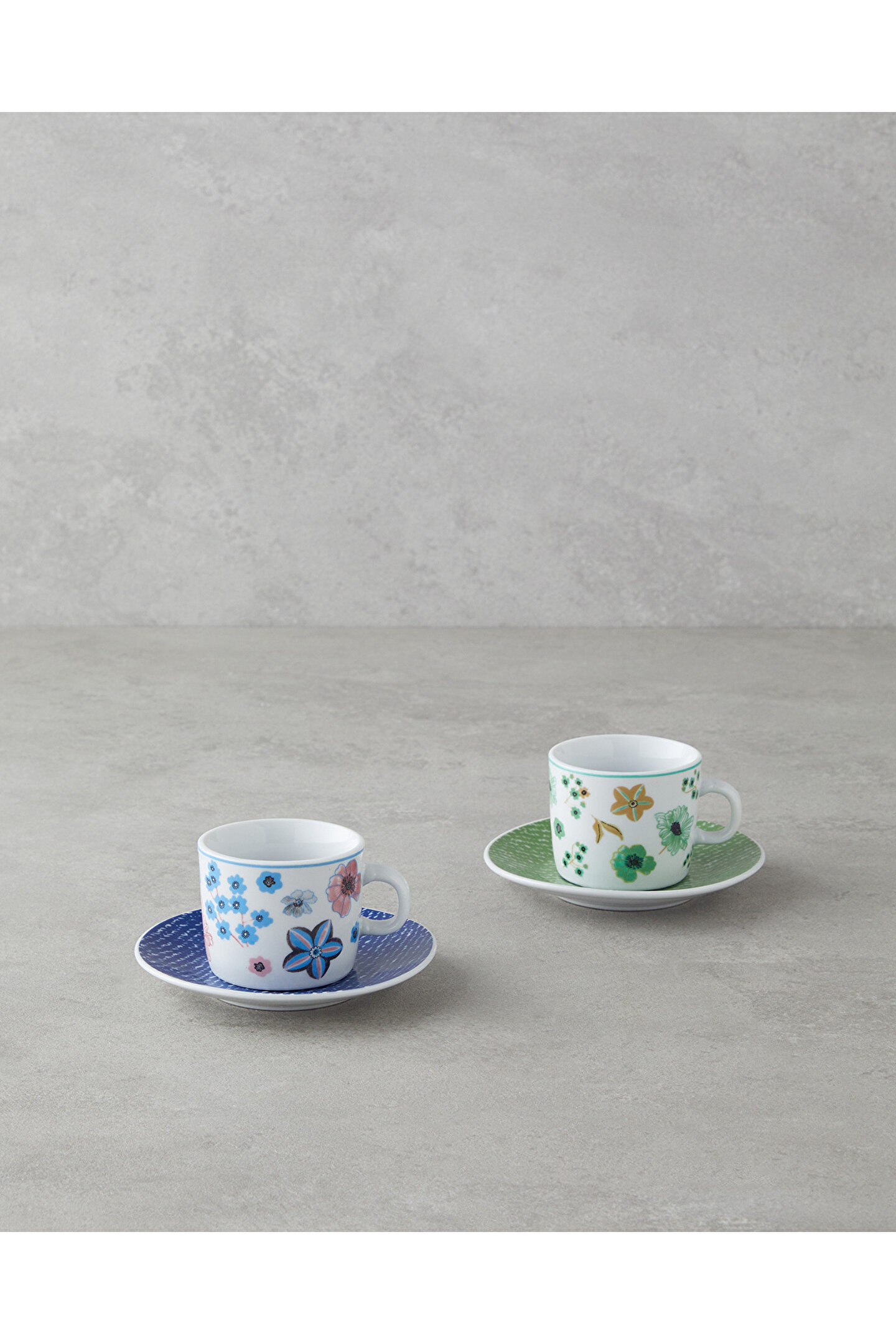 English Home Dewy Porselen 4 Parça 2 Kişilik Kahve Fincan Takımı 80 ml Mavi-yeşil