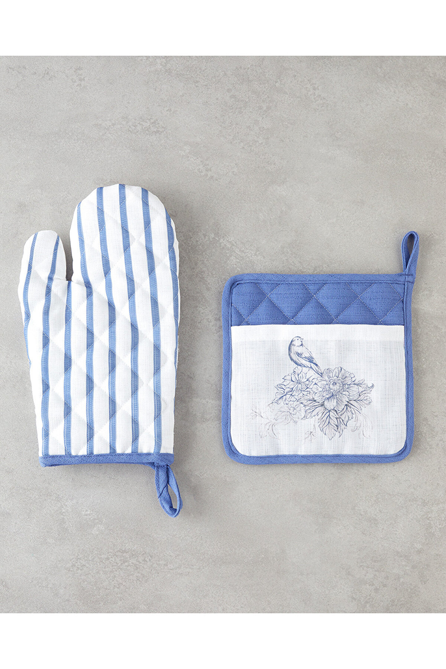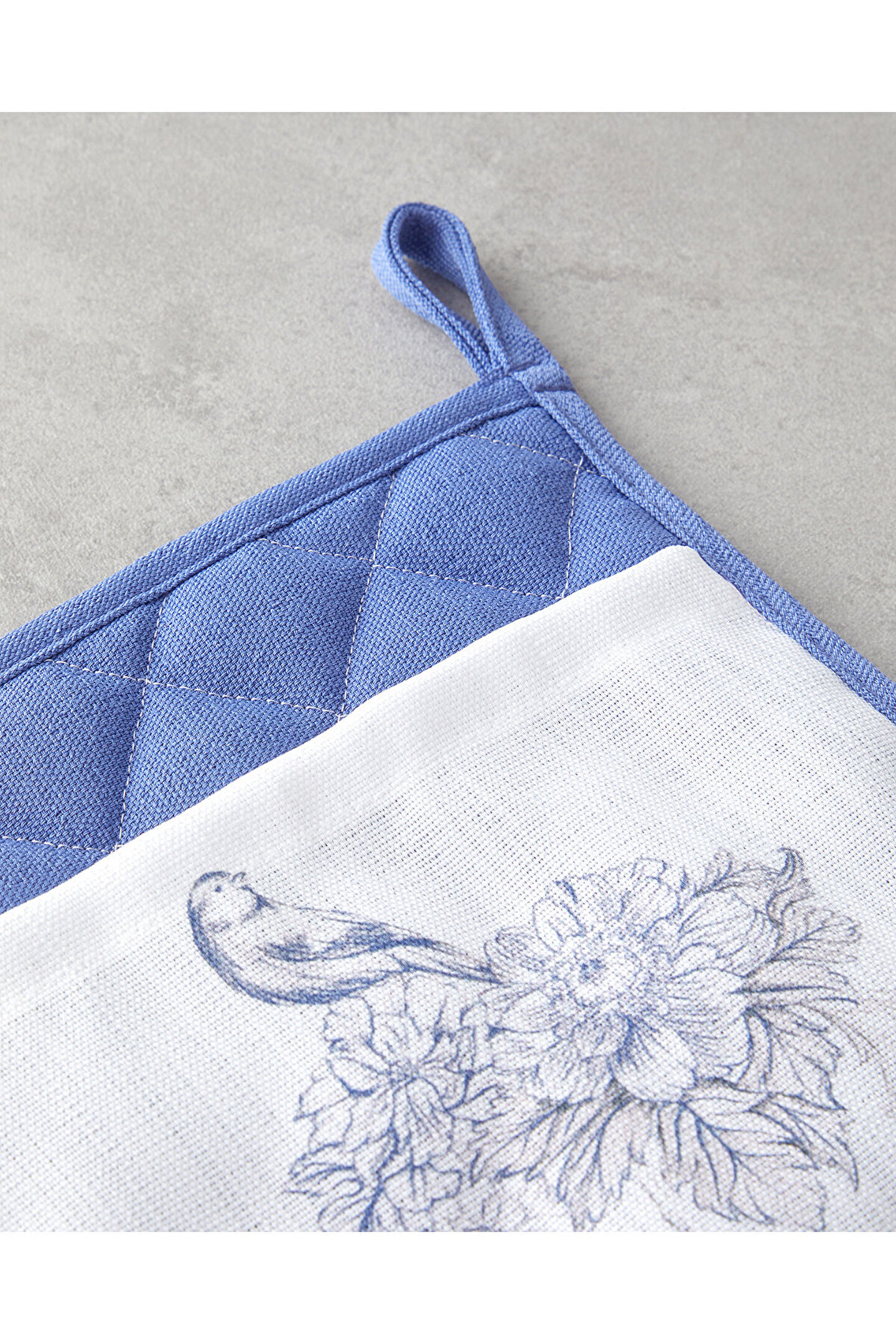 English Home Edenic Polyester 2li Mutfak Seti 17x30 cm+20x20 cm Beyaz - Lacivert