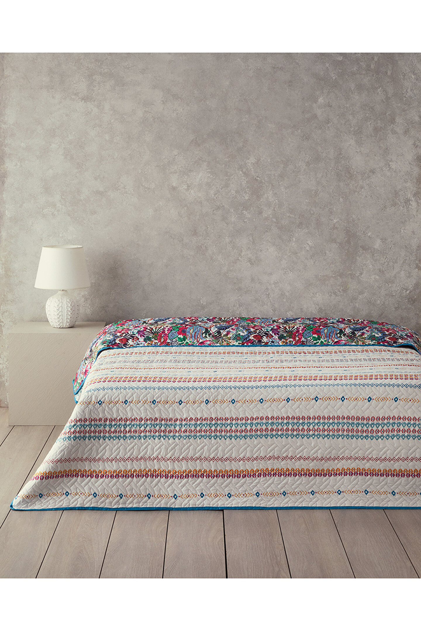 Polyester kumaş yapısı sayesinde uzun ömürlü kullanım ve kolay bakım imkanı sunar; Patchwork deseniyle modern ve şık bir görünüm kazandırarak yatak odanızın dekorasyonuna estetik bir dokunuş ekler; Tek kişilik boyutu, küçük yatak odaları için idealdir ve rahat bir kullanım sağlar;