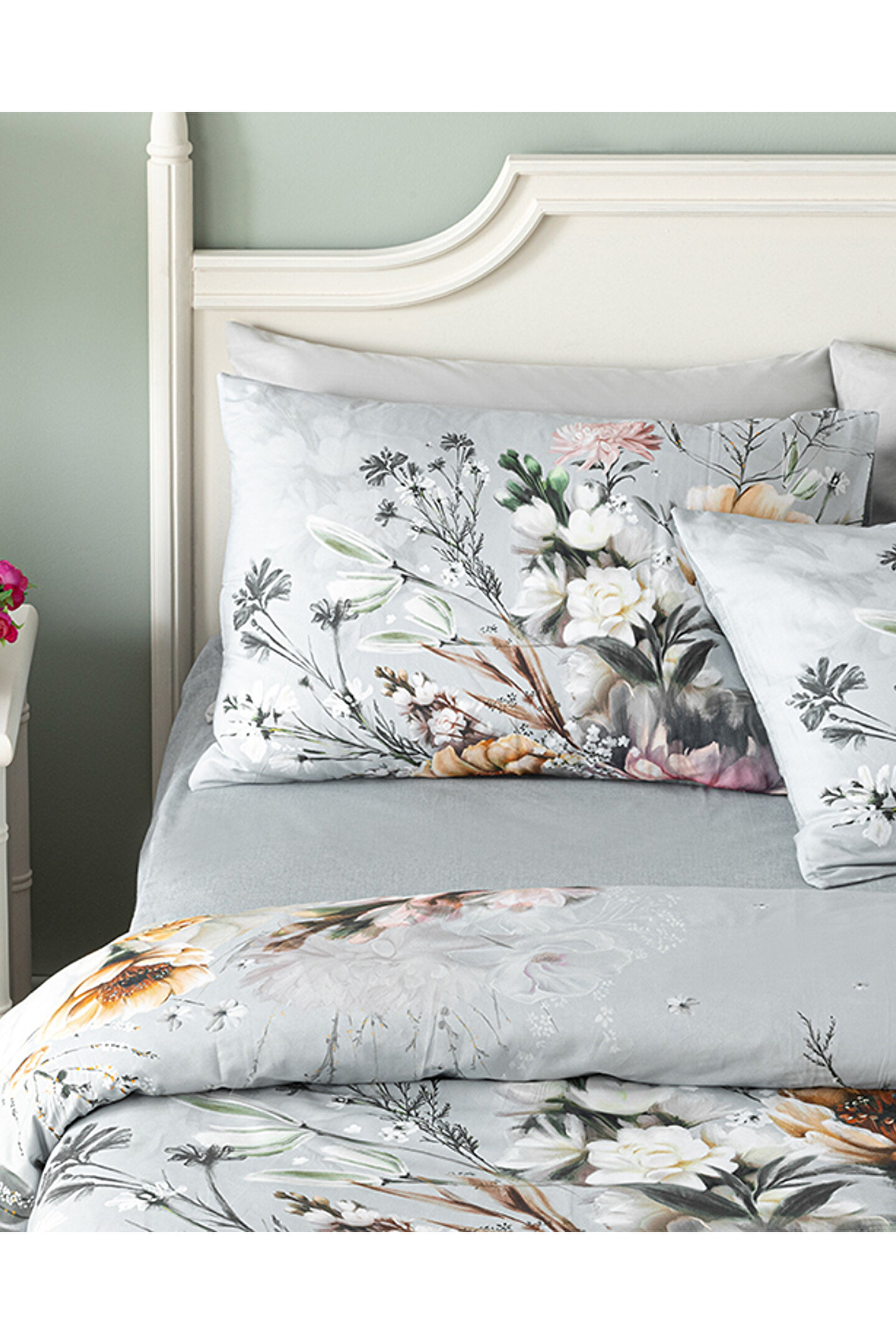 English Home Flower Heaven Dijital Baskılı Pamuklu Çift Kişilik Çarşaflı Nevresim Takımı 200x220 cm Gri