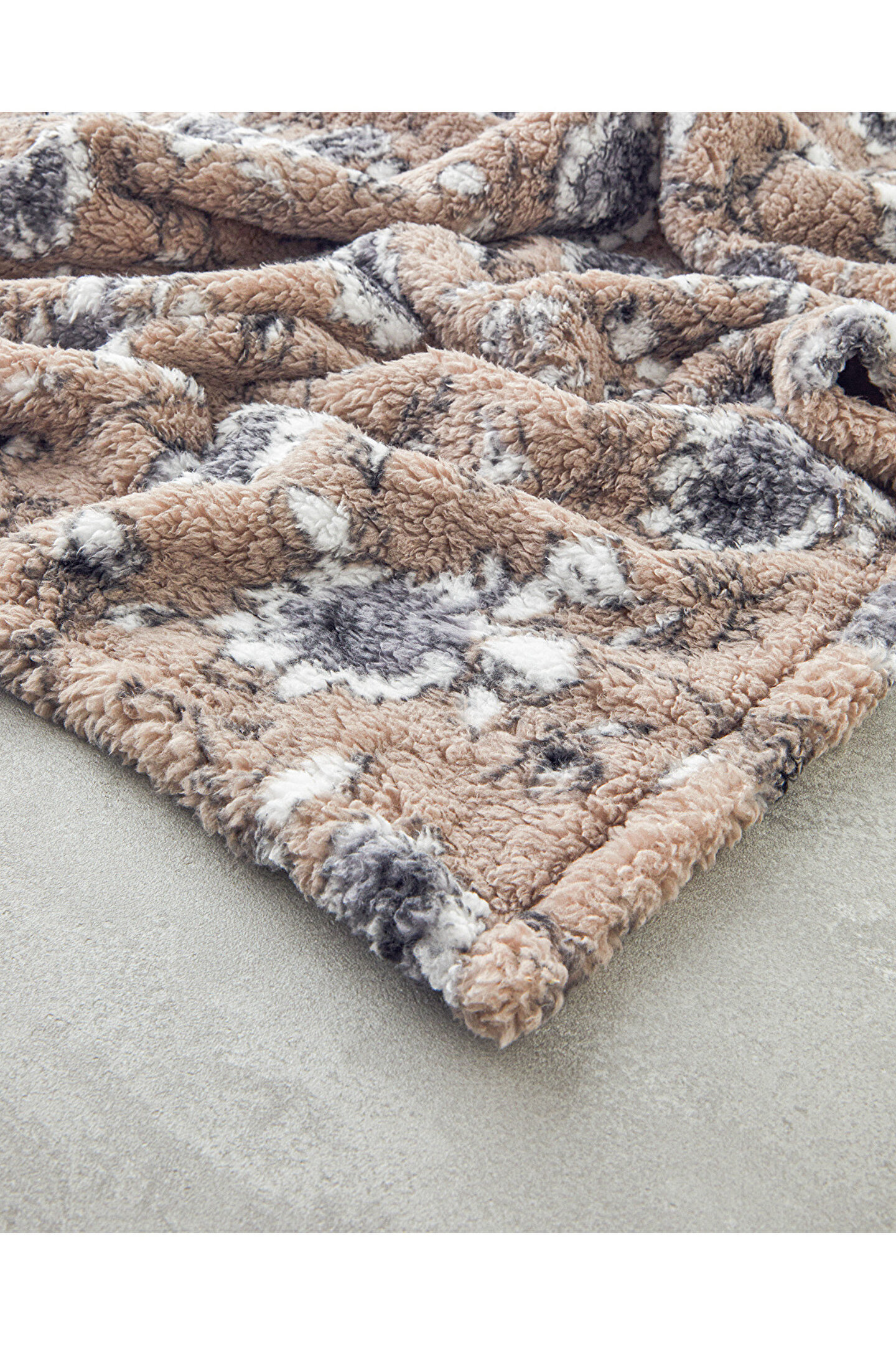 English Home Gardenia Glow Baskılı Sherpa Battaniye Vizon