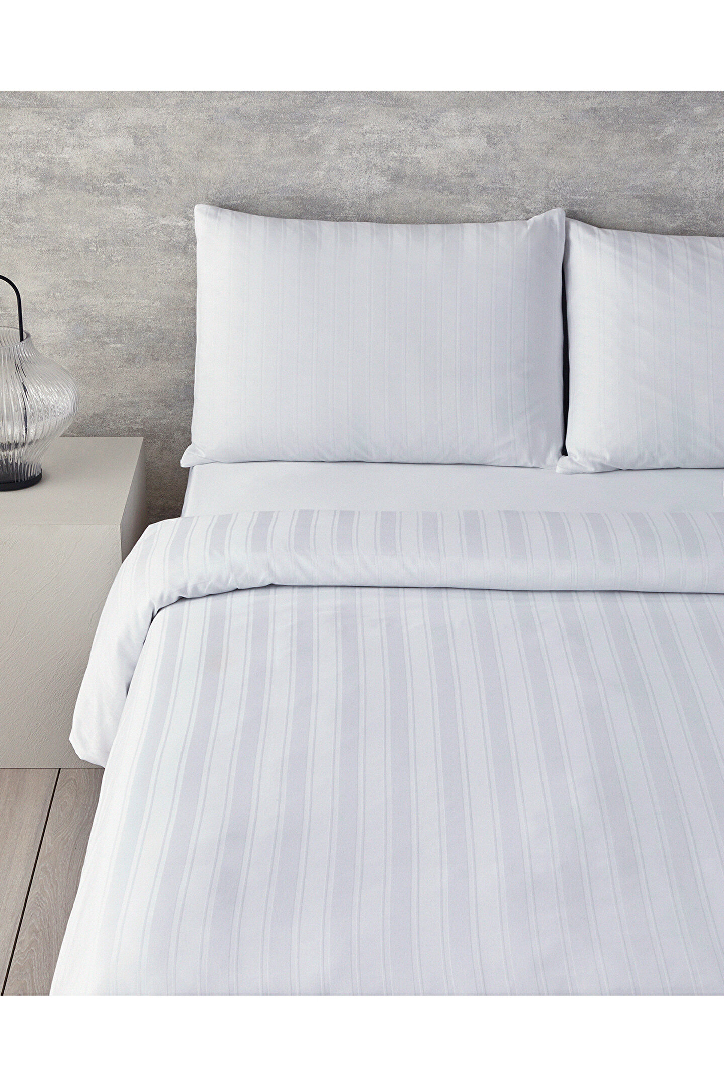 Lior çizgili pamuk saten çift kişilik nevresim takımı, beyaz rengiyle her yatak odasına zarif bir dokunuş katıyor; %100 pamuk saten kumaşı sayesinde yumuşak dokusuyla konforlu bir uyku deneyimi sunar; Lastikli tasarımı ile kolayca yatağa uyum sağlar ve sabit kalır, böylece gece boyunca rahatlığınızdan ödün vermezsiniz; Düz deseniyle sadelikten yana olanların tercihi olacak bu nevresim takımı, şık görünümüyle dekorasyonunuza modern bir hava katar; ;;