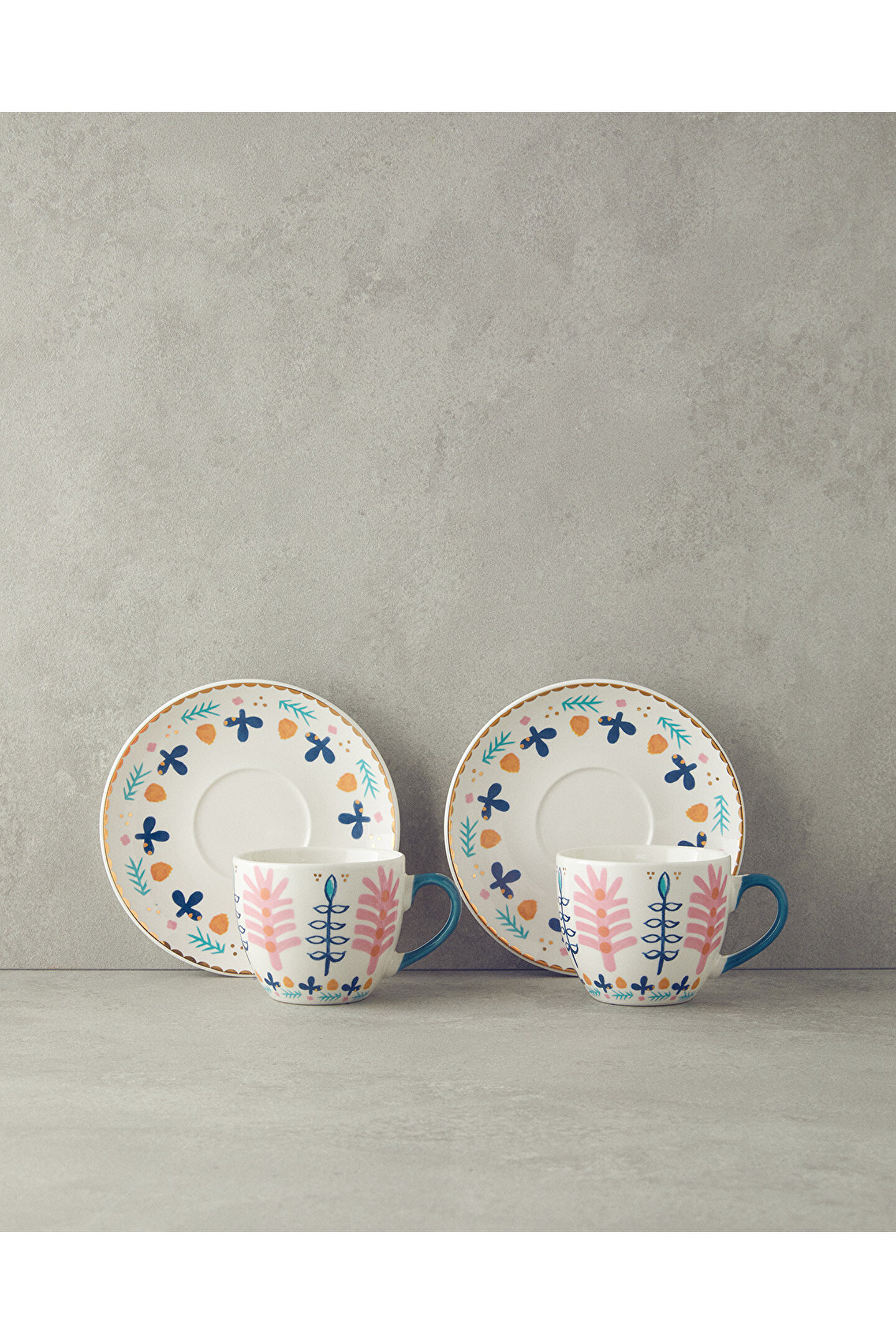 - Yüksek kaliteli bone China malzemesi ile üretilmiş, uzun ömürlü ve dayanıklı kullanım sunar.; - 4 parçadan oluşan set, 2 kişilik samimi kahvaltılar ve özel anlar için idealdir.; - Her fincan 150 - 299 ml hacimde olup, rahatlıkla içeceklerinizi yudumlayabileceğiniz ideal boyuttadır.; - Pembe ve mavi renk seçenekleriyle estetik görünümüyle sofralarınıza şıklık katar.; - Pembe ve mavi renklerin uyumu, her türlü sofra düzenine kolayca uyum sağlar ve göz alıcı bir atmosfer yaratır.