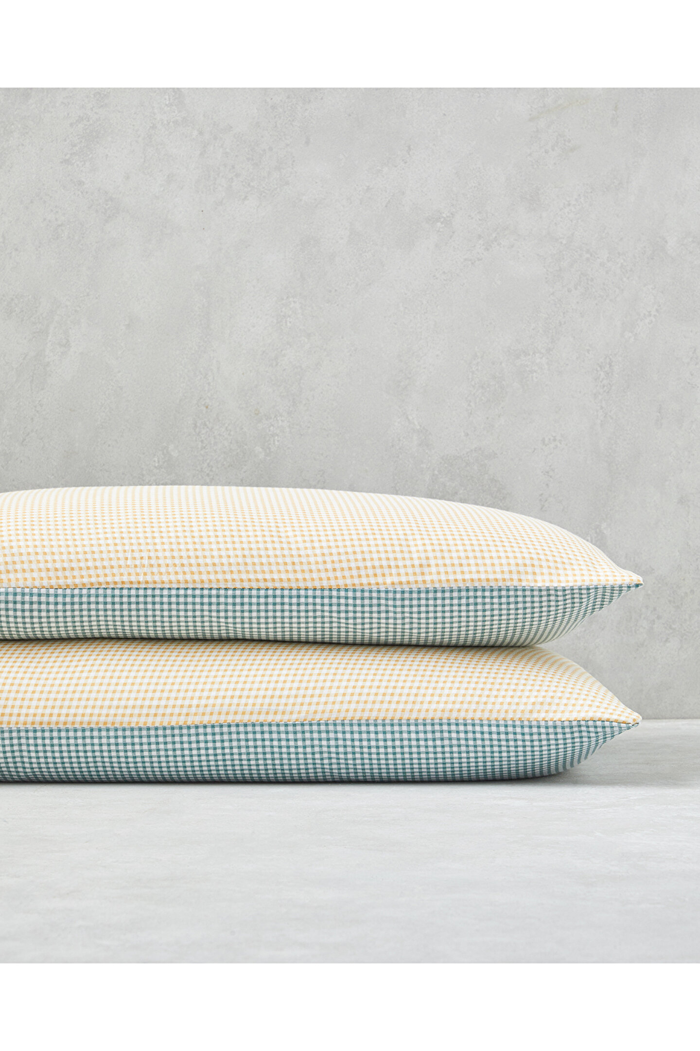 English Home Petit Check Pamuklu 2li Yastık Kılıfı 50x70 cm Sarı-Yeşil