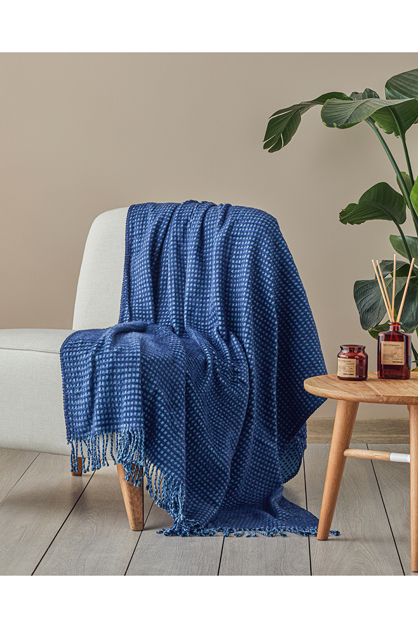 English Home Plain Waffle Pamuklu Tv Battaniyesi Lacivert- Mavi