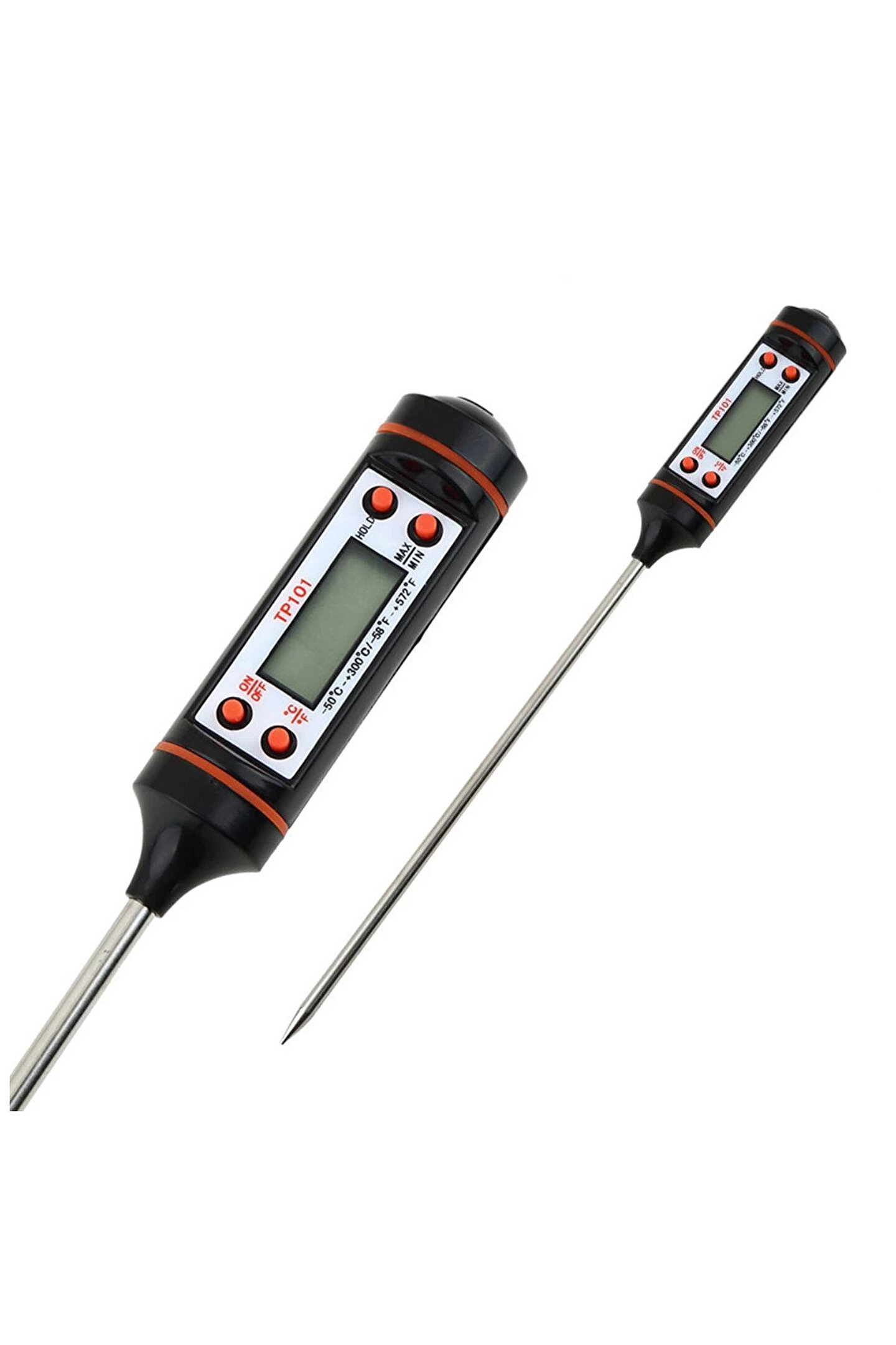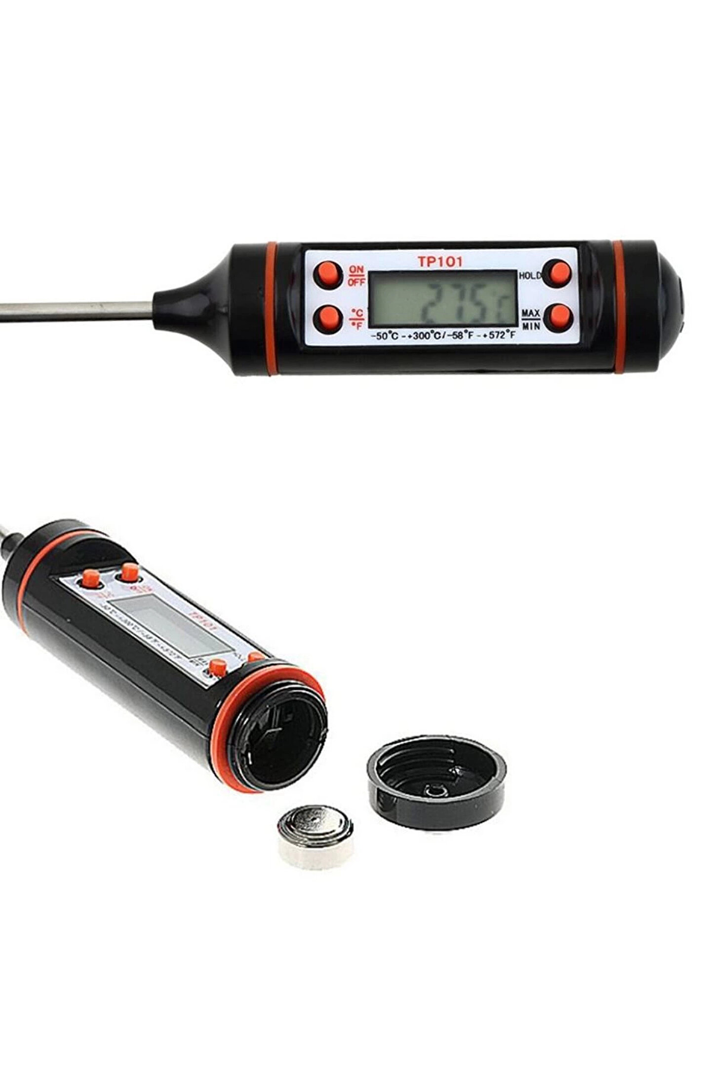 Yemeklerinizin, fırında belli bir ısıda pişmesi gereken yiyeceklerinizin istenen ısıda olup olmadığının kontrol edilmesinde, evde yoğurt yapıyorsanız ideal mayalanma ısısı olan 42 derecenin tutturulmasında, barbeküde pişen etin yanmadan istenen ısıda pişmesinin sağlanmasında, bebek mamalarının istenen sıcaklığa düşmesinin kontrolunda, ısıtılan suyun belli bir dereceye gelmesinin kontrol edilmesinde, dondurulmuş gıdaların ısısının kontrolünde, bebek banyonuzu hazırlarken tam sıcaklıkta olmasına, içeceklerin belli bir ısıda saklanıp saklanmadığının kontrolunda ve bunların haricinde sıcak, soğuk, sıvı veya katı bütün cisimlerin ısılarının kontrolünde sadece bir dokundurma veya daldırma ile kontrolünde en büyük yardımcınız olacaktır.; Özellikler ; Geniş uygulama alanı , Uzun paslanmaz çelikten sensör , Geniş Isı Ölçüm Aralığı -50 °C and +300 °C (58 °F to 572 °F) °C santigrad ve °F Fahrenhayt olarak ölçme imkanı .; 10 dakika kullanılmaması halinde Otomatik kapanma.; Sensor hata gösterimi.; Saklama ve emniyetli kullanım için Plastik Paketinde gönderilir.; Hassasiyet: 0. 1 °C (°F) .; Hata Payı +- 1°C .; Probe uzunluğu: 14,5 cm.; Ürün boyutu : 23,5cm uzunluk 2,2cm çap .; , Pil: 1 x 1. 5 V LR44 - AG13 Button Cell Pil ( Cihaz içinde mevcuttur )