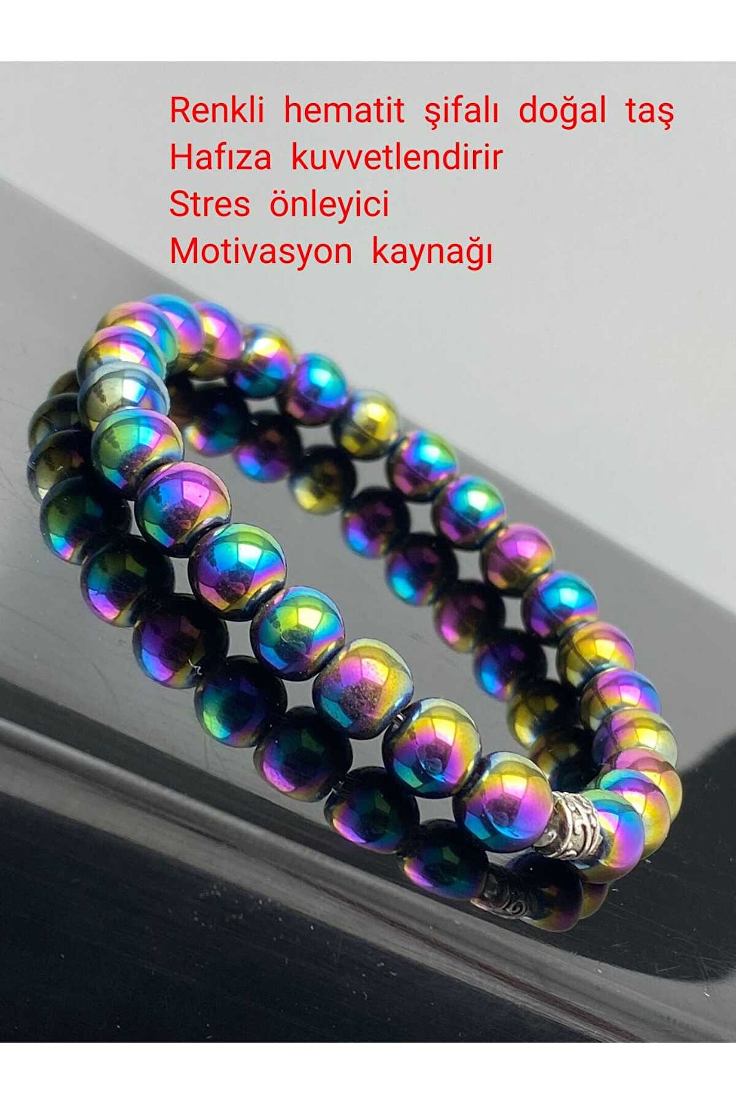 Doğal hematit taşı kullanılarak üretilmiş, şıklığı ve doğallığı bir arada sunan renkli bileklik; Her bir bileklik, benzersiz renk kombinasyonları ile dikkat çeken doğal taşların eşsiz güzelliğini yansıtır; Hem günlük kullanım hem de özel günlerde tercih edilebilecek, zarif tasarımıyla göz alıcı bir aksesuar;