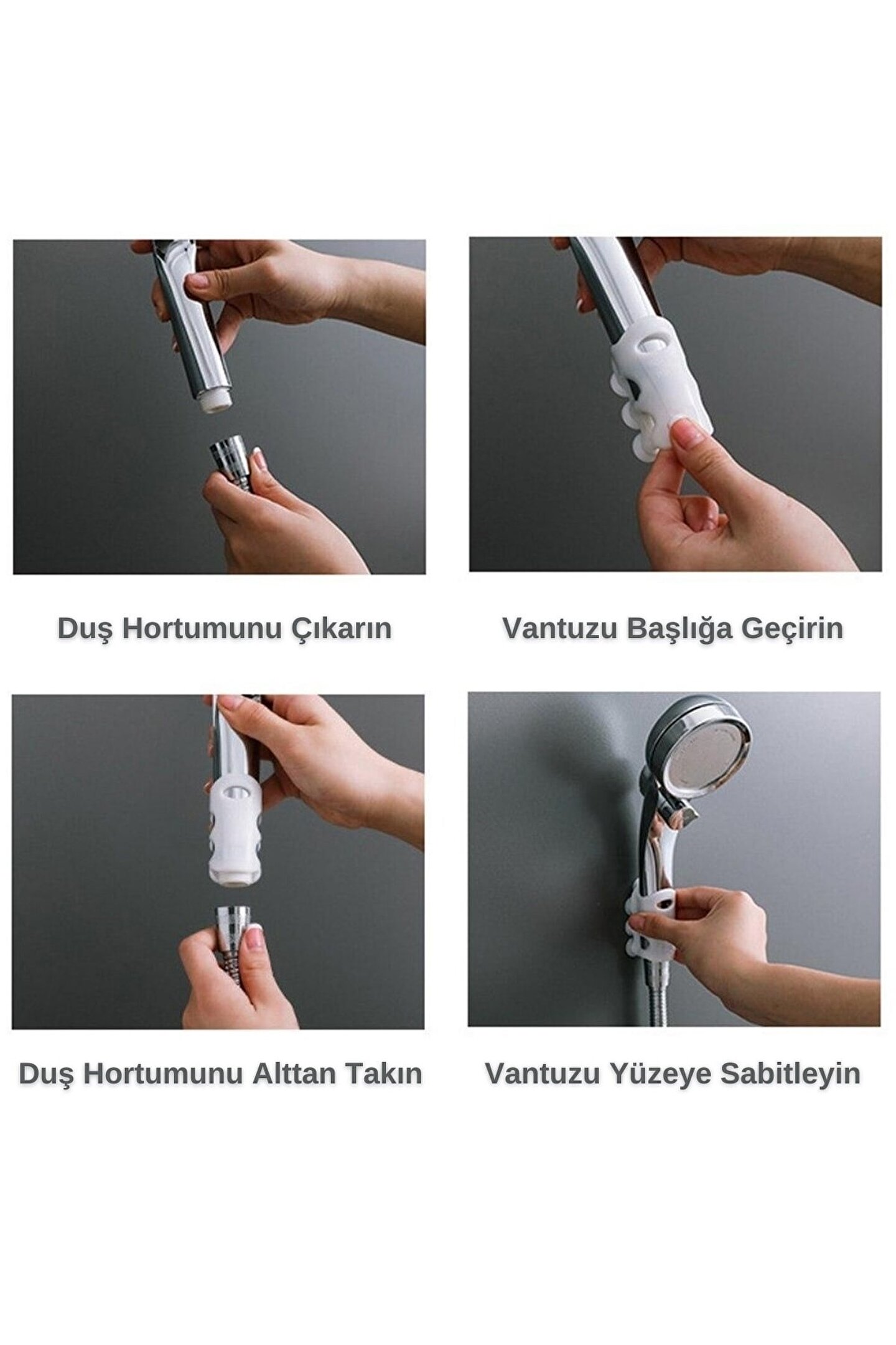 Su Geçirmeyen Dayanıklı Kancalı Banyo Duş Başlığı Askı Tutucu Silikon Güçlü Vantuz Vakum Aparatı Banyoda hayatınızı kolaylaştıran bir üründür. Duvar yüzeylerine zarar vermeden güçlü bir şekilde yapışır. Ürünün Özellikleri Güçlü silikon malzeme sayesinde duvar yüzeyinden düşmez Çok amaçlı olarak kullanılabilir. Banyoda farklı yükseklikler için uygundur. Kurulumu kolay ve alet gerektirmez. Pürüzsüz yüzeylerde kullanılır. Yıkanabilir ve yeniden kullanılabilir. Kullanım Alanları Banyonun farklı yüksekliklerinde kullanıma uygundur. Havlu askılığı olarak kullanılabilir. Duvar askılığı olarak kullanılabilir. Giysilerinizi asabilirsiniz. Paket İçeriği 1 x Duş Vantuz Tutucu Ürün Ölçüleri En 4 cm Boy 7 cm Yükseklik 1 cm