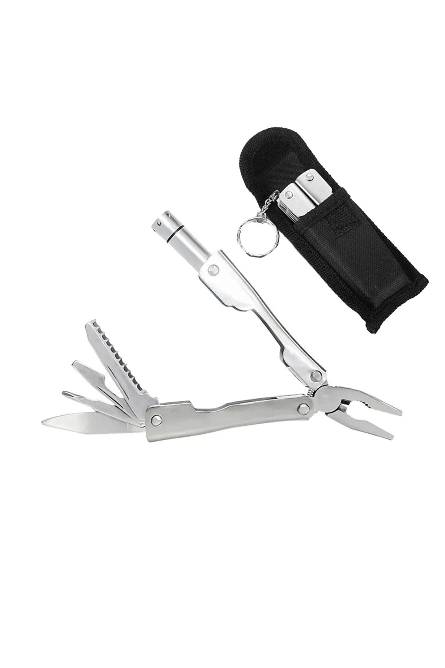 Sunup Çok Fonksiyonlu Pense - Çakı Seti Malzeme: Paslanmaz çelik; Ağırlık: 80g; Katlama Boyutu: 6.5 x 3.1 x 1.7cm; Fonksiyonlar: Pense, testereler, şişe açacakları, bıçaklar, tornavida, fener, anahtarlık; Uygulama Kapsamı: Açık spor, hediye araçları, ev yedekleri, kamp, vb.; Özellikler: Çok Fonksiyonlu Araçlar: Pense, kesici, yarı testere, keskin kazıyıcı, küçük tek kelime tornavida, şişe açacağı, büyük tornavida, bıçak, oluklu tornavida, orak, kireç çözücü, anahtarlık.; Ergonomik Sap: Hafif ve dayanıklı, rahat kavrama için ergonomik tasarım, taşınabilir ve kullanımı kolay.; Çeşitli Uygulamalar: kamp, yürüyüş, balıkçılık, piknik vb. için idealdir.; Paket İçeriği: 1 x Taşınabilir Taktik Çakı;