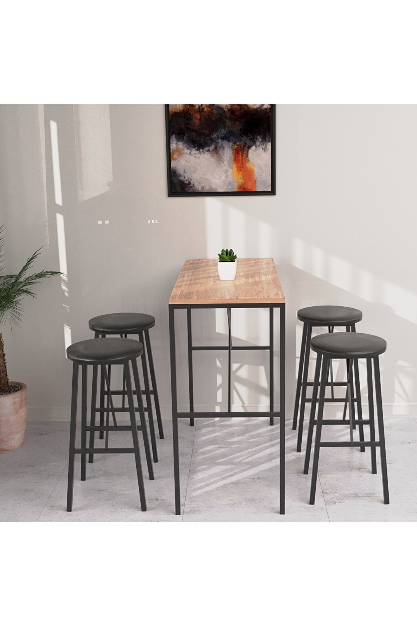 Bar masası: Masa ebatları: Tabla ebatları: 45 cm x 100 cm Yükseklik : 92 cm Sağlam ve dayanıklı yapıdadır. ; Malzeme: Metal profil + Sunta lam tabla Dış mekana uygun değildir. ; Bar Tabure: Yükseklik: 67 cm Oturma alanı: 30 cm x 30 cm Ürün demonte gelmektedir, kurulumu basittir. ; Oturma alanı masif ahşaptır. ; Ayak kısımları metal profildir. ; Maks. ; kaldırma kapasitesi 120 kg'dır. ; Ev eğlencelerinizi daha özel hale getirecek bar masa takımı ile evinizde unutulmaz anlar yaşayın! Hemen sipariş vermek için acele edin!;