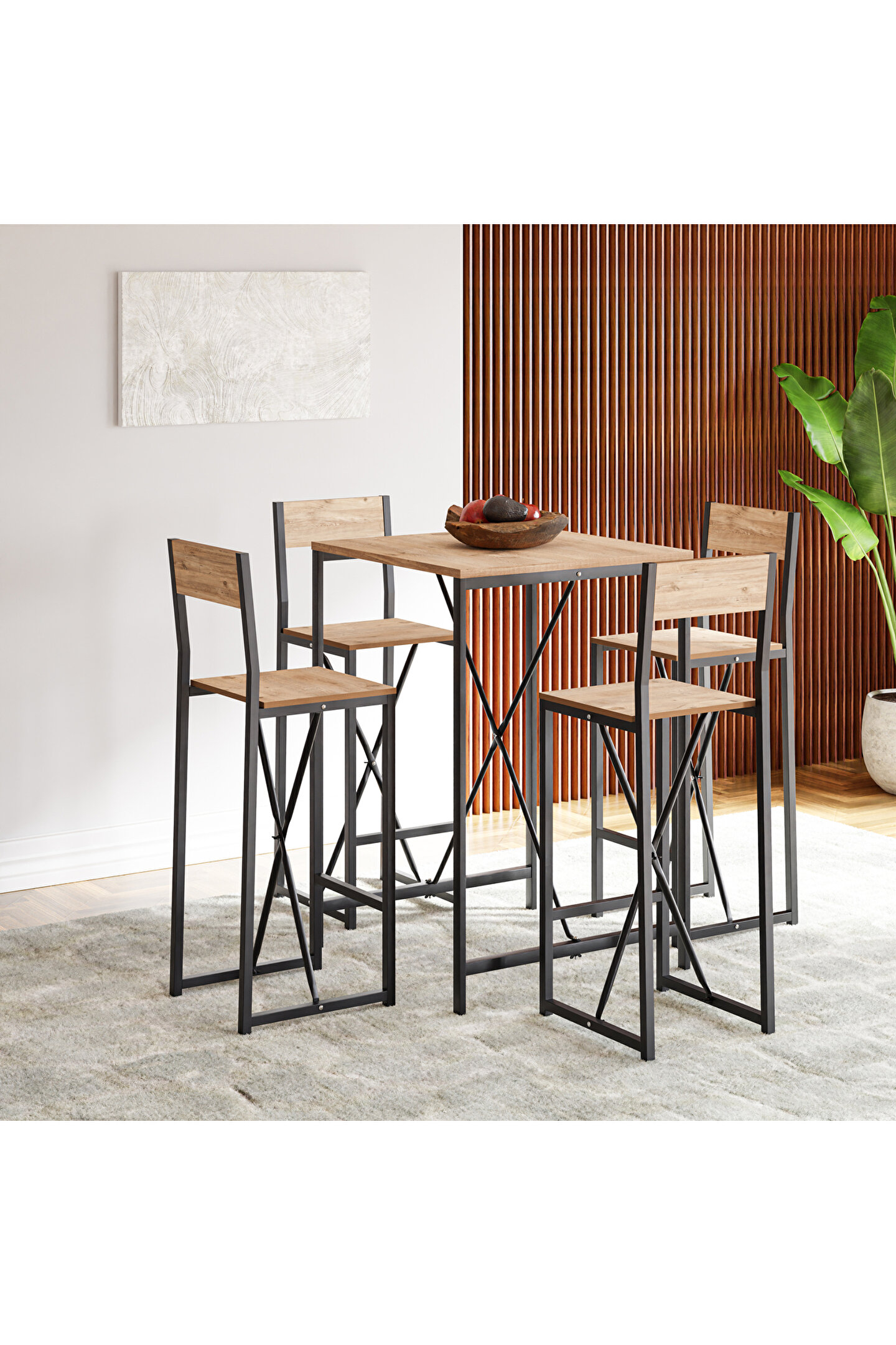 4 Kişilik Bar Masa Sandalye Seti Mutfak Yemek Masası Takımı Çam 1575 , evlerin ve işletmelerin vazgeçilmez mobilya parçalarından biridir. Sağlam ve dayanıklı yapısı ile öne çıkan masa takımı, uzun seneler boyunca kullanılabilir. Şık ve benzersiz tasarımı sayesinde iç mekanların görünümünü güzelleştirir. Her türlü dekorasyon stili ile uyumlu bir masa takımıdır.