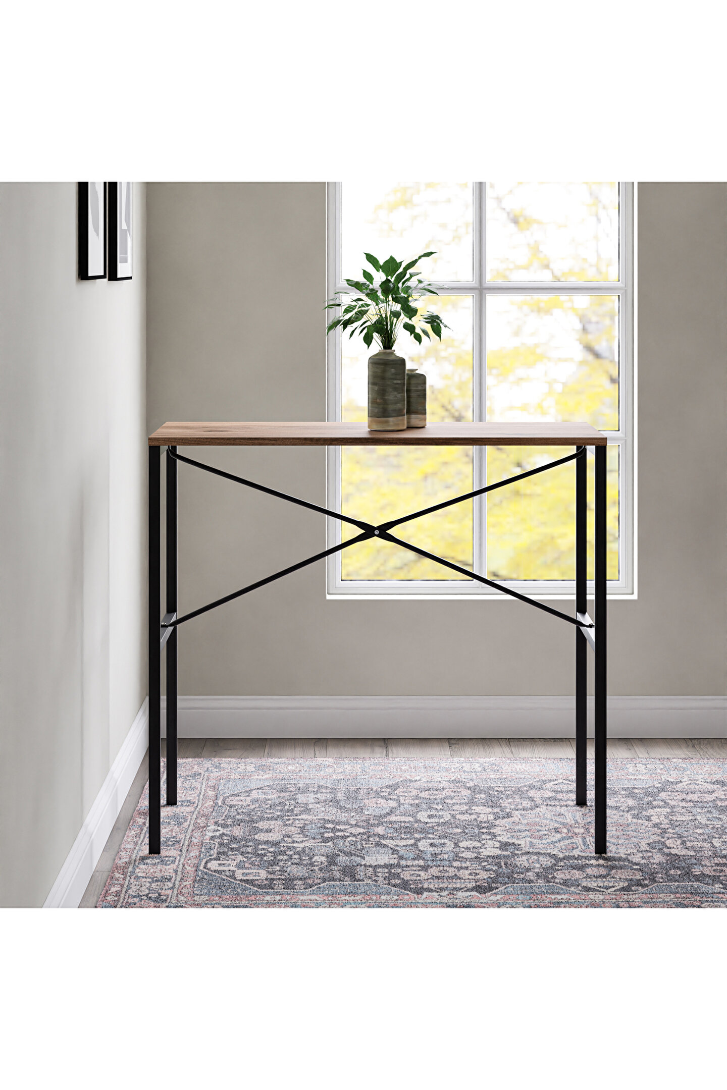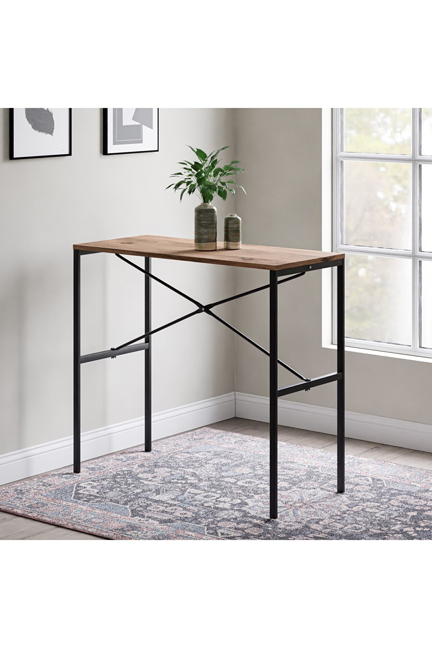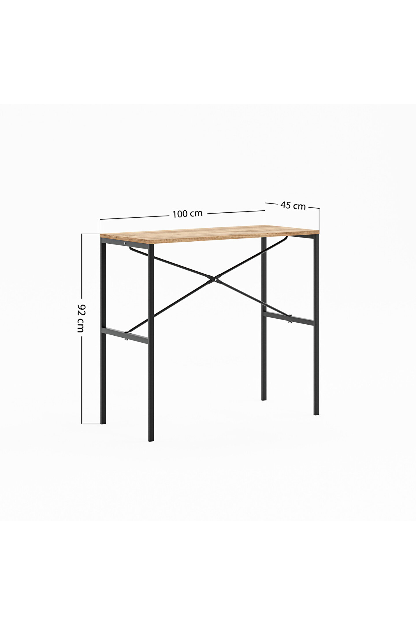 Masif ahşap yemek masasının tabla ebatları, 45 cm genişlik ve 100 cm uzunluk ölçüleriyle tasarlanır.; Bu ölçüler, masanın kullanım alanına uygun kompakt bir boyut sunarak pratik bir kullanım imkanı sağlar.; 92 cm yüksekliği, ergonomik bir tasarım sunarak konforlu kullanım imkanı tanır.; Bu ideal yükseklik, masayı çeşitli oturma düzenleriyle uyumlu hale getirir ve sizlere rahat bir yemek alanı sunar.; Malzemesi metal profil ve mdf tabladan oluşur.; Bu kombinasyon, dayanıklı metal yapı ile sağlamlığı artırırken, sunta lam tabla da hafiflik ve estetik açıdan çeşitli tasarım imkanları oluşturur.; Yemek masası dikdörtgen şekilde tasarlanır, bu da masanın kullanım alanında pratik bir yerleşim sağlar ve çeşitli dekorasyon tarzlarına uyum gösterir.; Dikdörtgen form, sizlerin masayı geniş bir yelpazede farklı oturma düzenleri ve mekan düzenlemeleriyle kullanmanıza imkan verir.; Bar ve bistro gibi işletmelerde yaygın olarak tercih edilen bir tasarım sunar.; Dayanıklılığı, estetik görünümü ve dikdörtgen formu, bu tür mekanlarda yoğun kullanıma uygun bir çözüm yaratır.; Kolay silinebilir yüzeyi, günlük temizlik işlemlerini pratikleştirir ve masanın bakımını kolaylaştırır.; Bu özellik, leke direnci ve temizlik kolaylığı sunarak masanın uzun süre temiz ve şık kalmasına yardımcı olur.; Hafif ve portatif bir tasarıma sahiptir, bu da taşıma ve yer değiştirme işlemlerini kolaylaştırır.; Bu özellik, masayı farklı mekanlarda rahatlıkla kullanabilme ve ihtiyaca göre yer değiştirebilme avantajı sağlar.;