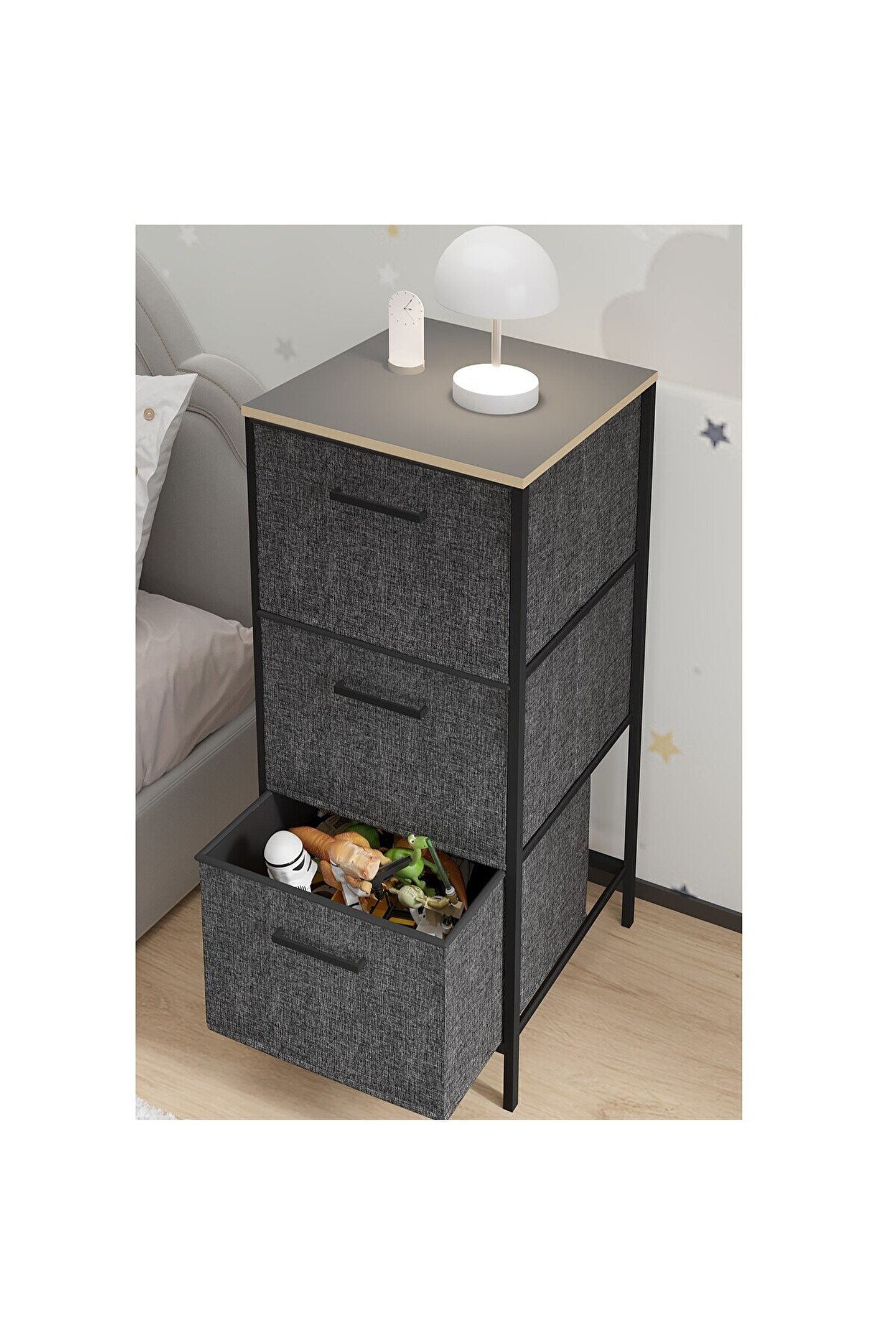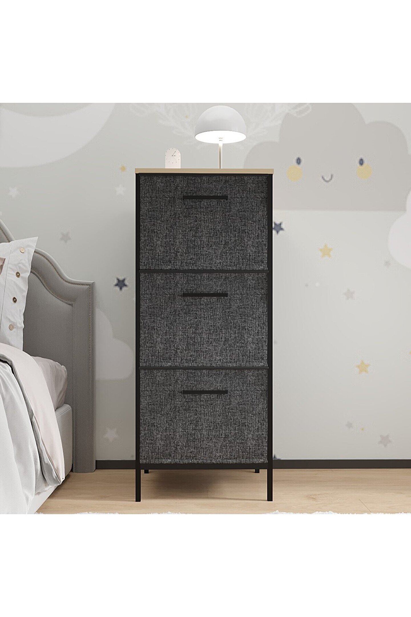 eportatif Çocuk Dolabı 3 Çekmeceli Büyük Boy Komodin Sehpa
