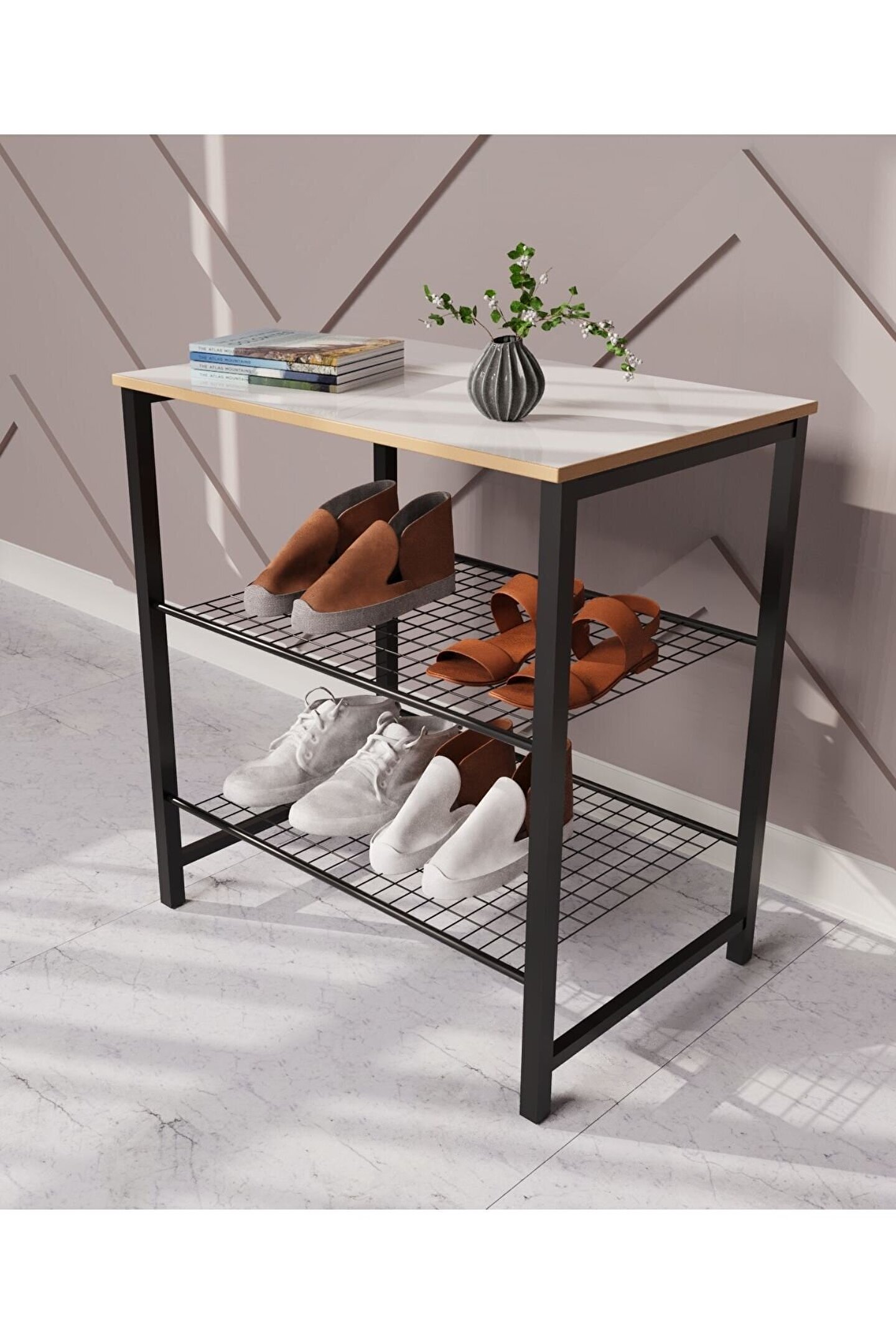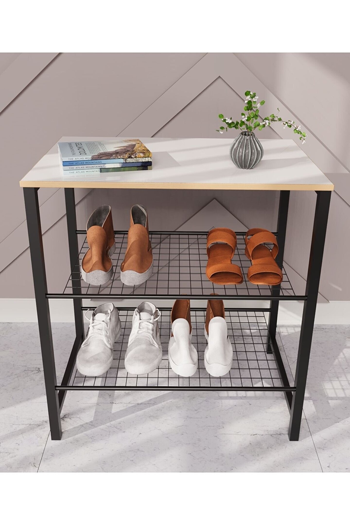 Üç katlı tasarımı sayesinde geniş depolama alanı sağlar, ayakkabılarınızı düzenli ve tozdan korur; - Beyaz renk seçeneğiyle modern ve şık bir görünüm kazandırır, evinizin dekorasyonuna kolayca uyum sağlar;