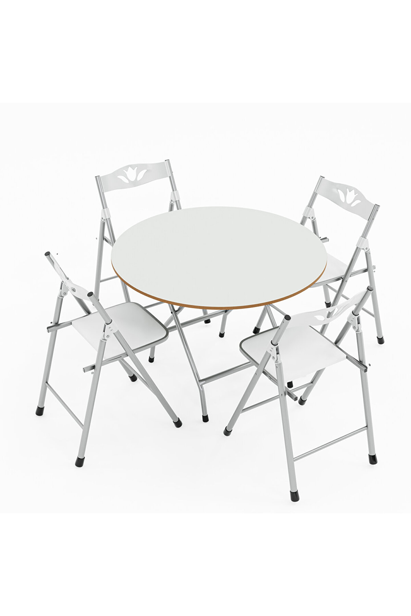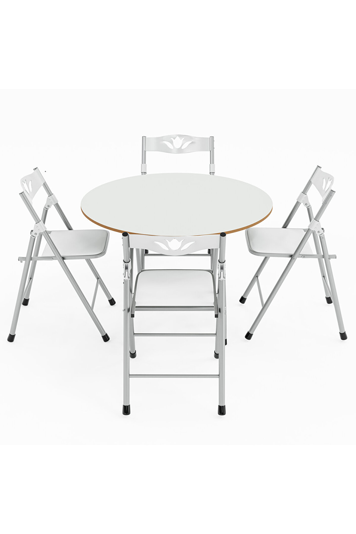 Katlanır Masa Yuvarlak Kırma Mutfak Masası Beyaz 1463, modern ve işlevsel bir mobilyadır. Bu set, özellikle küçük mutfaklar, yemek odaları veya çok amaçlı alanlar için tasarlanmıştır. 70 çap boyutlarındaki masa, ideal bir yemek yüzeyi sunarken, katlanabilir sandalyeler alanı en verimli şekilde kullanmanıza olanak tanır. Setin tasarımında, MDF, görsel bir zenginlik ve modern bir dokunuş ekler. Masa ve sandalyeler, elektrostatik boyalı metal ayaklar sayesinde ekstra sağlamlık kazanır. Bu yapı, günlük kullanıma uygun dayanıklılık sunarken, şık bir görünümle mekanınızı güzelleştirir. Katlanabilir masa ve sandalyeler, küçük yaşam alanlarında büyük bir avantaj sağlar. Setin kolay katlanabilir olması, sınırlı depolama alanlarında bile rahatlıkla saklanabilmesine imkan verir. Bu özellik, özellikle apartman dairesi gibi yerlerde yaşayanlar için idealdir, kullanılmadığı zamanlarda masa ve sandalyeleri kolayca kaldırıp alan açabilirsiniz. Set, fonksiyonelliği ve şıklığı bir arada sunarak, her türlü iç mekan dekorasyonuna uyum sağlayacak şekilde tasarlanmıştır.