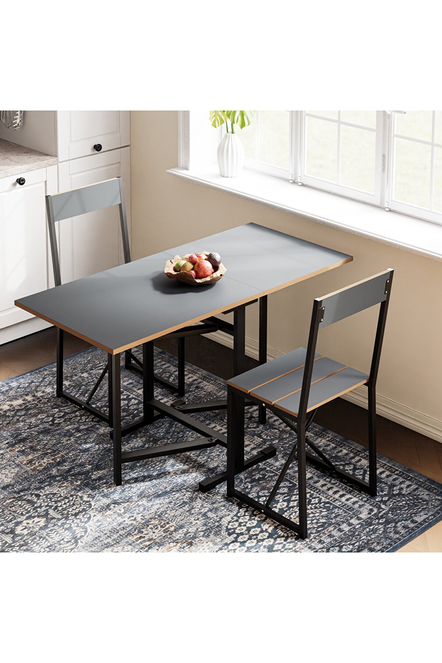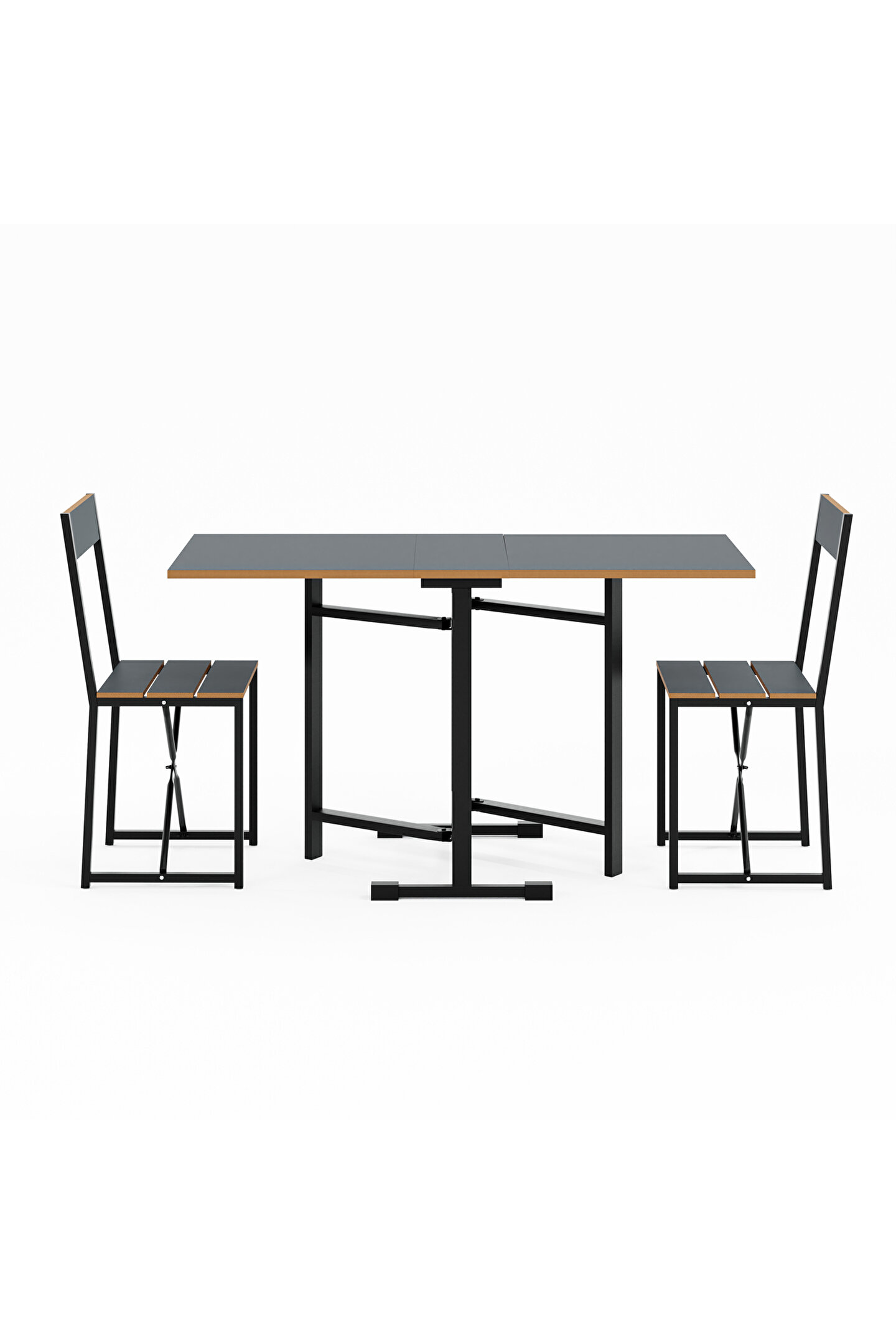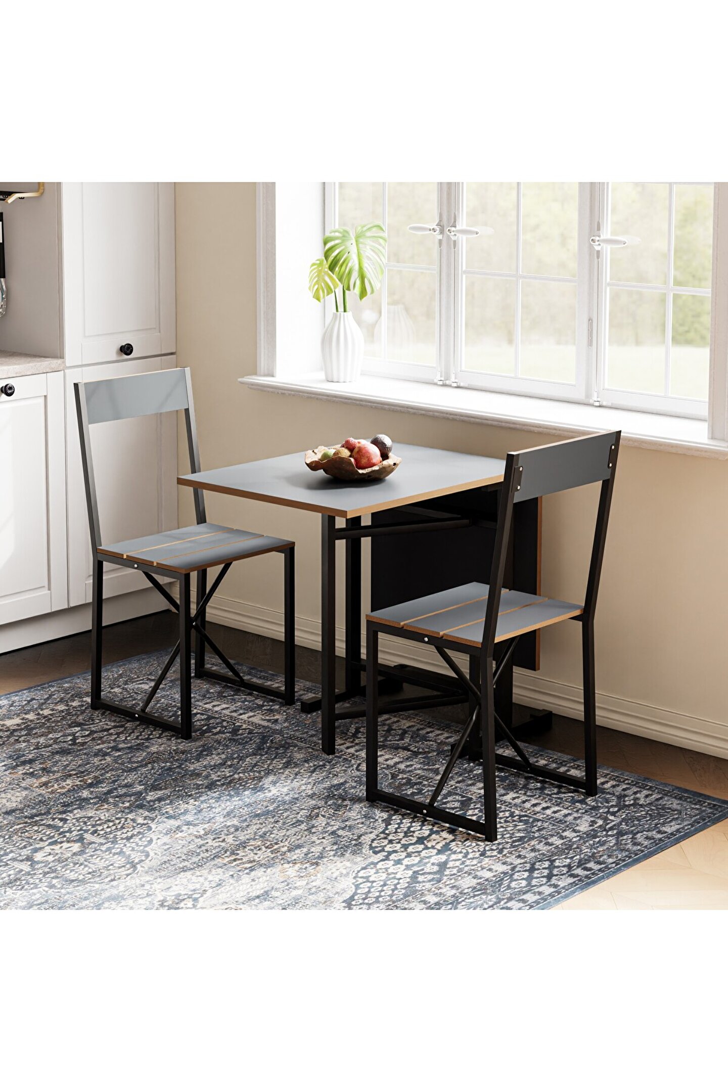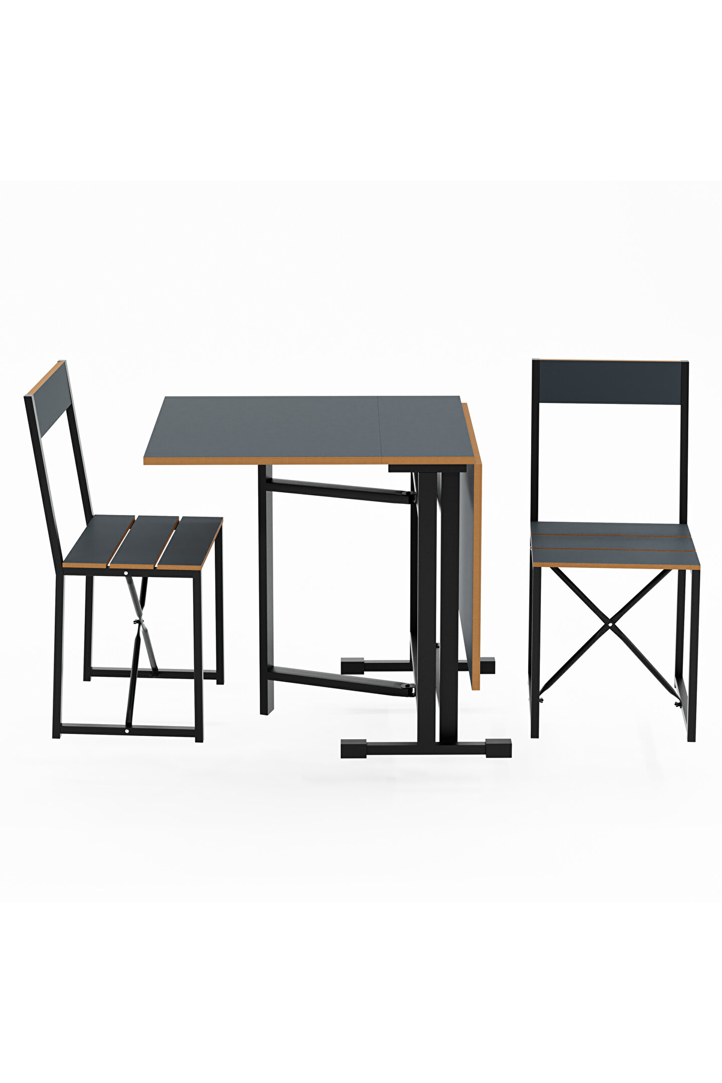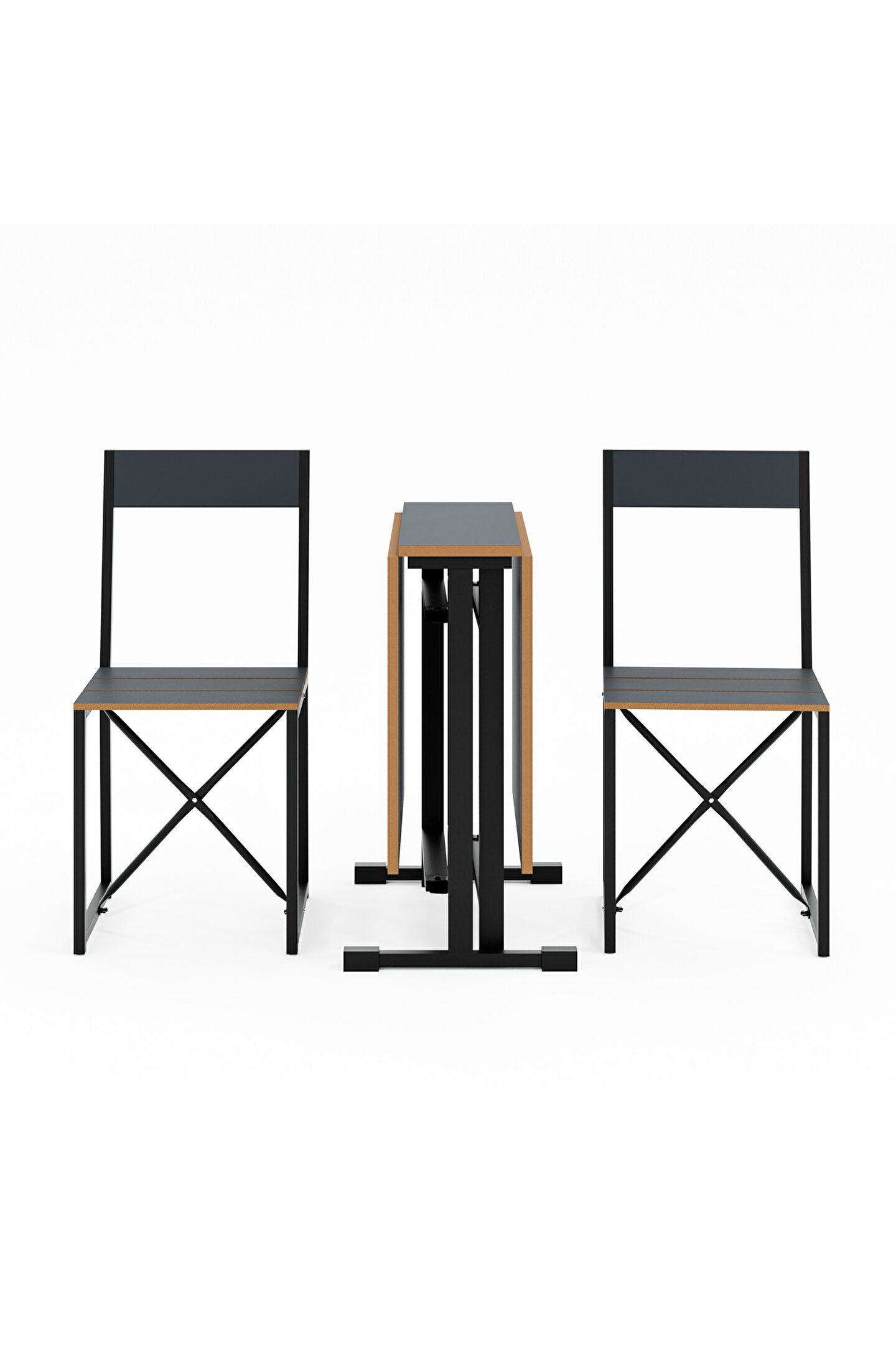 Katlanır Mutfak Masa Sandalye Takımı Füme 1448, küçük mutfaklar ve sınırlı oturma alanları için özel olarak tasarlanmış bir mobilya setidir. Set, bir adet katlanabilir masa ve iki adet katlanabilir sandalyeden oluşmaktadır. Bu özellik, kullanılmadığı zamanlarda minimum alan kaplamasını sağlar, böylece alanınızı daha verimli kullanmanıza olanak tanır.