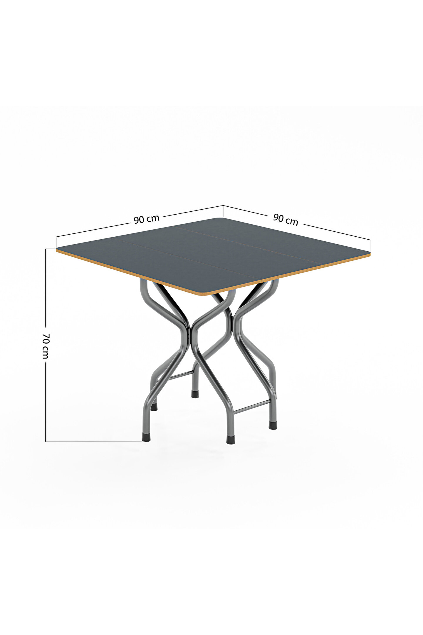 Modern görüntüsü ve portatifliği ile dikkat çeken Eportatif markasına ait bir adet katlanabilir kare yemek masası, 90 x 90 cm ölçülere ve 72 cm yerden yüksekliğe sahiptir. ; Ayakları sağlığa zararlı olmayan bileşenleri ve çizilmeye, aşınmaya, solmaya, ufalanmaya karşı dirençliliği ile bilinen elektrostatik boya ile kaplanmış metalden üretilmektedir.; Tablası ahşap siyah mermer desenli olan masa suntalam materyalden üretilir. Materyalin kaliteli yapısı gereği; su ile temasa, nemli ortamlara ve ısıya karşı oldukça dayanıklıdır.; Katlanabilir özelliği sayesinde alandan tasarruf sağlar. İhtiyaca göre açılıp kapanabilen iki kanadı ile ihtiyaç anından sonra katlanarak kaldırılabilir.; Portatif olması, dilendiğinde farklı alanlarda kullanılabilmesine olanak sağlar. Mutfak, salon, oturma odası gibi iç mekanlarda; bağ, bahçe, yazlık, teras, kış bahçesi gibi dış mekanlarda; ofis, büro gibi iş yerlerinde sabit bir yerde kullanma zorunluluğu bulunmaksızın tercih edilebilir.; Dar alana sahip 1+1, stüdyo dairelerde, küçük mutfağa sahip evlerde, öğrenci evlerinde, apartlarda oldukça kurtarıcı bir role sahiptir.; Siyah rengi ve hoş mermer deseni ile her tarzdan sandalye ile ahenk oluşturabilir iken aynı zamanda bulunduğu ortamda yer alan her türlü mobilya ile de uyum sağlar.;