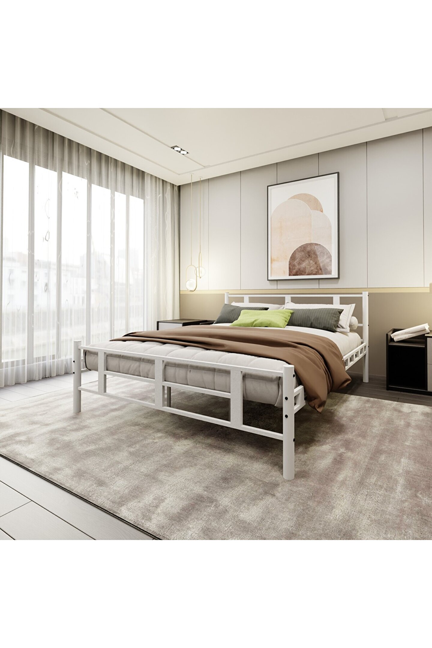 Demonte özellikli kolay taşınabilir ve yeniden kurulabilen ürün Ambalaj içinden çıkan alyan anahtar ile başka bir alete ihtiyaç duyulmadan kolay kurulum Metal sesi ve gıcırdamayı önleyen özel tasarım plastik lata kapakları Yatağın kaymasını önleyen iskelet tasarımı Sağlam bir kurulum imkanı sunan somun ve civatalı lata sistemi Hassas ölçülü lazer boru kesim ile hazırlanan malzemeler Zeminde ses ve çizilmeyi önleyen dekoratif plastik kapaklar Çizilmeye ve zor koşullara dayanıklı elektrostatik toz boya Minimum 1 mm kalınlığında birinci sınıf metal profil/boru malzeme ÜRÜNE İLİŞKİN DİĞER ÖNEMLİ BİLGİLER Kolay Kurulum: Detaylı kurulum kılavuzu ve ürün içerisinde gönderilen alyan anahtar sayesinde rahat kuruluma sahiptir.; Ürün demonte halde gönderilmekte olup, sadece metal karyola olarak satılmaktadır.; Yatak dahil değildir.; Sağlam ve Sessiz: Güçlendirilmiş yan destekler ile yüksek taşıma kapasitesine sahiptir.; Sağlamlığı ön plana alan tasarımıyla gıcırdama, ses ve hareketin önüne geçilmiştir.; Malzeme ve Boya: Birinci sınıf boru ve profil kullanılmaktadır.; Yüksek Elektrostatik toz boya kalitesi ile çizilmeye dayanıklıdır.; Koruyucu Ambalaj: Ürün tek karton koli içerisinde, iç koruyucu materyal ile desteklenerek gönderilmektedir.; Kargo: Yüksek desi ürünleri kata teslimat yapan kargo şirketleri ile kapıya teslimat yapılır.; Kurulumu müşteri yapar.;