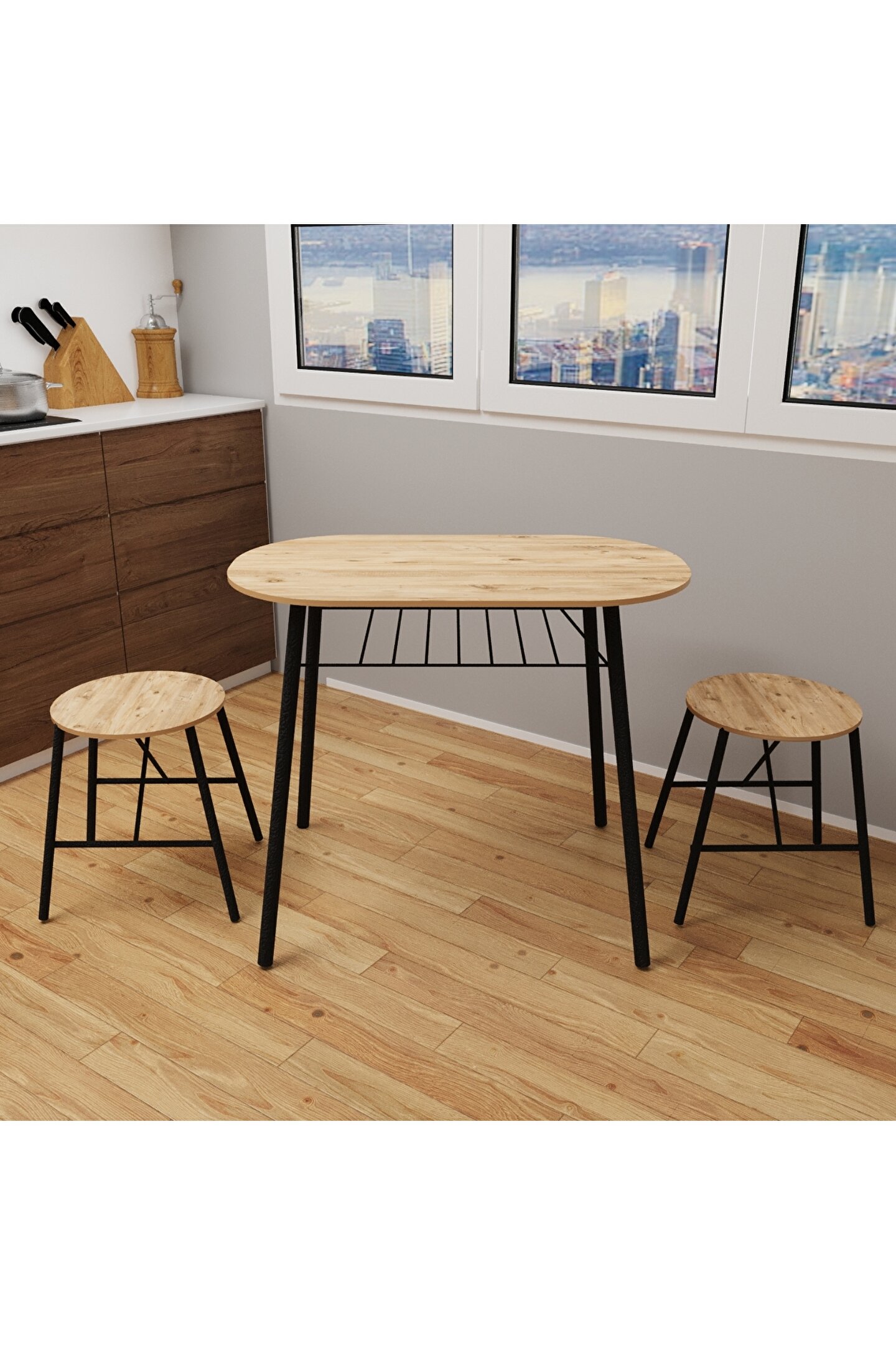 Modern tasarımıyla dikkat çeken bu mutfak masası takımı, siyah sandalyeleri ve oval masa yüzeyi ile mekanınıza şıklık katıyor; Sabit masa fonksiyonu sayesinde stabil ve güvenli bir kullanım sunar, hareketli parçaları olmadığı için uzun ömürlüdür; Sandalyelerde kumaş kullanılmamış olup, kolay temizlenebilir yüzeyi ile pratik bir kullanım sağlar; Suntalam materyalden üretilmiş olup, dayanıklılığı ve uzun süreli kullanım vaat eder; 2 yıl garanti süresi ile satın alma sonrası da güven verir ve müşteri memnuniyetini ön planda tutar;