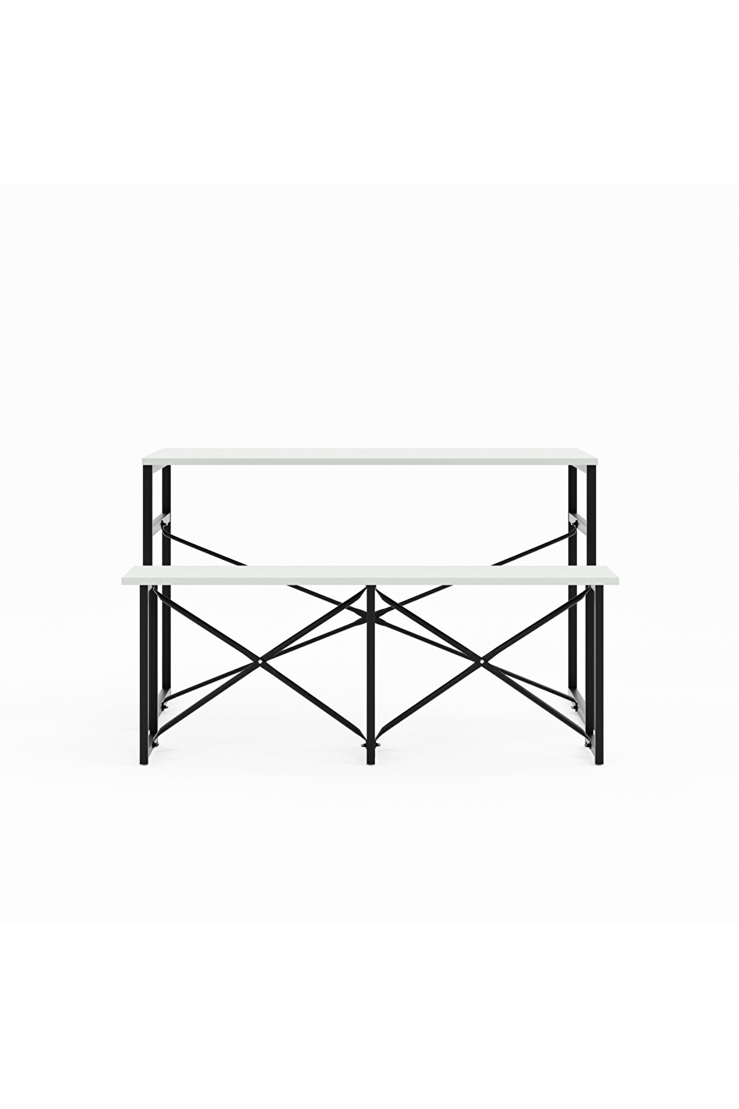 Bench Bank Masa Seti 1560, 120x60 cm ebatlarında geniş bir çalışma ve yemek yüzeyi sağlayan bir masa ve bench kombinasyonundan oluşur. Bu ölçüler, hem günlük kullanım hem de özel etkinlikler için mükemmel bir alana işaret eder. Masa yüksekliği olan 70 cm, ergonomik bir oturma deneyimi sağlar. Setin bench bölümü, genişliği 120 cm ve derinliği 32 cm ölçülerinde olup, 45 cm yükseklikte tasarlanmıştır. Bu bench, yemek masasına ekstra oturma alanı olarak mükemmel bir eşlikçi olmasının yanı sıra, mekana modern bir dokunuş da katar. Ürün ayakları, demir elektro statik boya ile kaplanarak dayanıklılık ve estetik görünüm sunar. Üst tabla kısmı, sağlamlık ve uzun ömürlü kullanım için mdf malzemeden üretilmiştir. Bu malzeme seçimi, masanın kolay temizlenmesini ve bakımının pratik olmasını sağlar. Setin içeriği, bir adet masa ve bir adet benchten oluşur, bu da müşterilere kolay bir seçim ve satın alma süreci sunar.