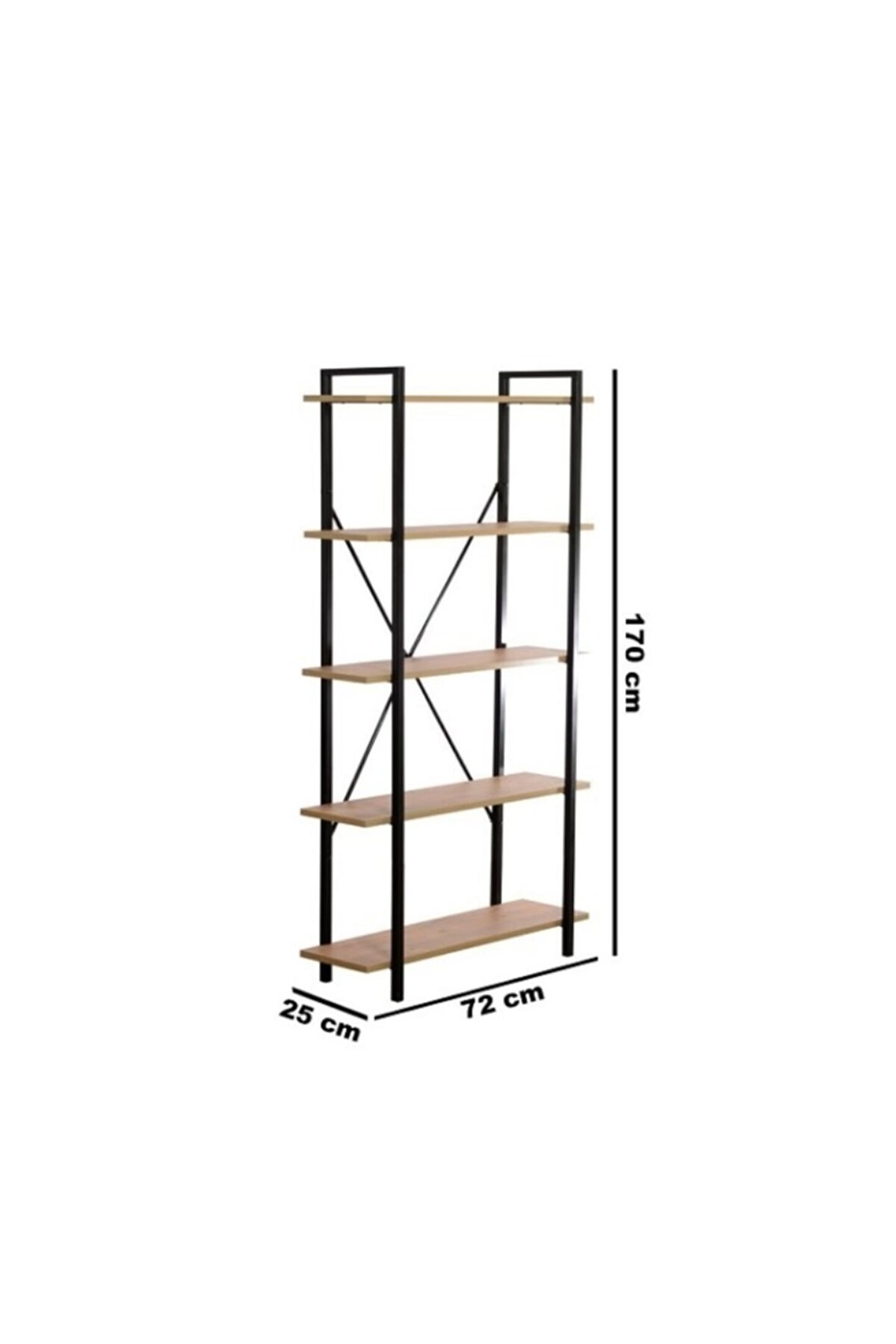 5 Raflı Metal Kitaplık: Ürünümüz demonte ( kurulmamış ) olarak gelmektedir. ; Ürün Ebatları: Yükseklik: 170 cm Genişlik: 70 cm Derinlik : 25 cm Tabla kısmı suntalam malzemedir. ; İskelet kısımları metal profil malzemedir.;