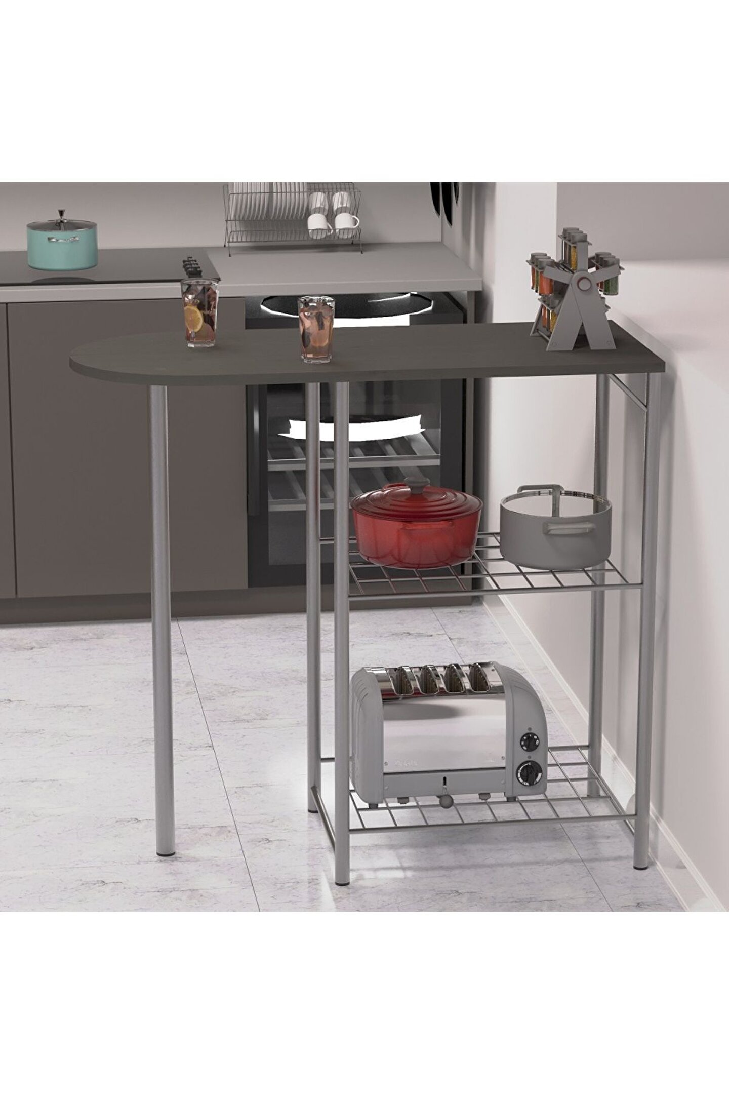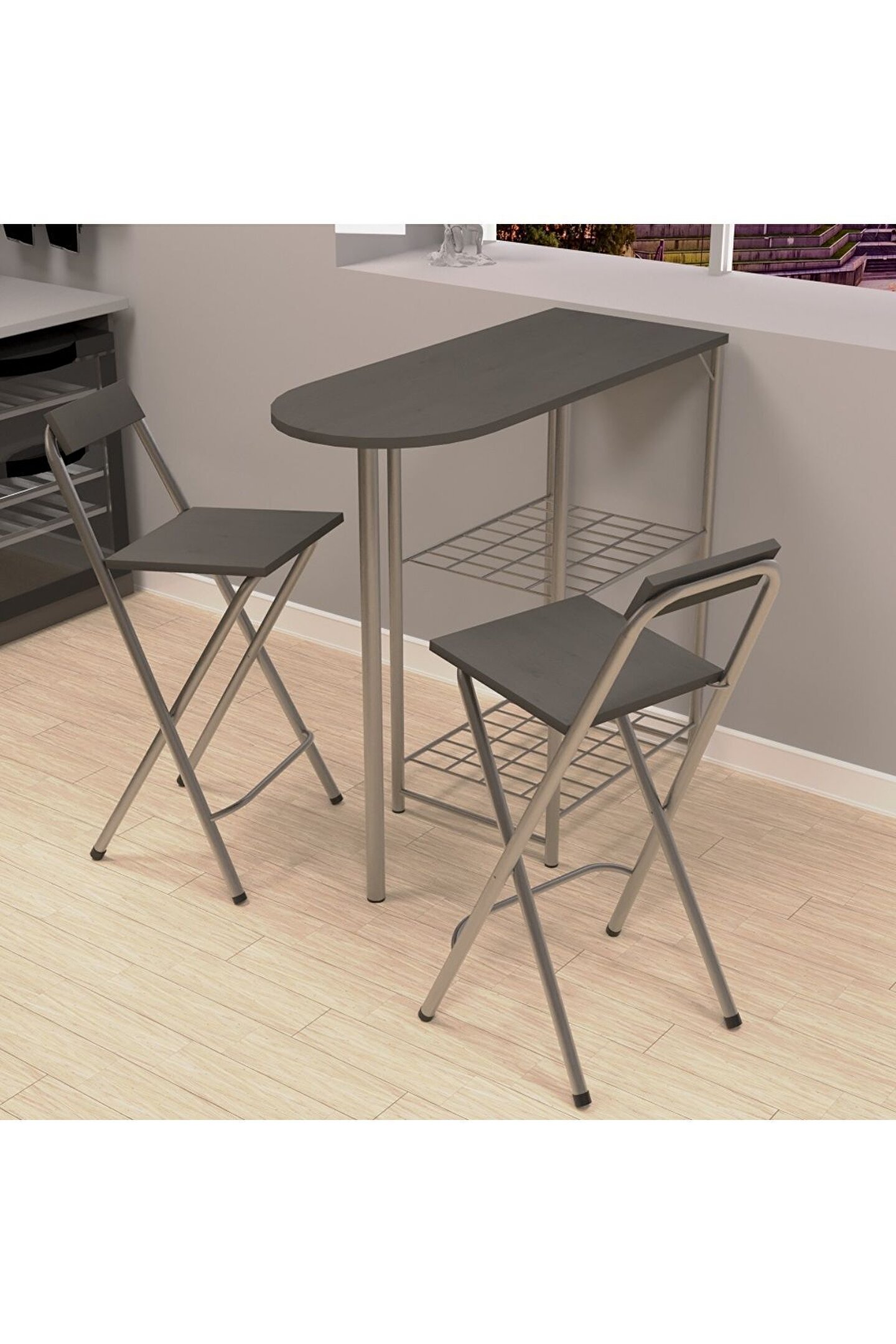 eportatif Mutfak Bar Masa Sandalye Takımı Katlanır Bar Sandalye 2 Kişilik Mutfak Masası Gri 1297