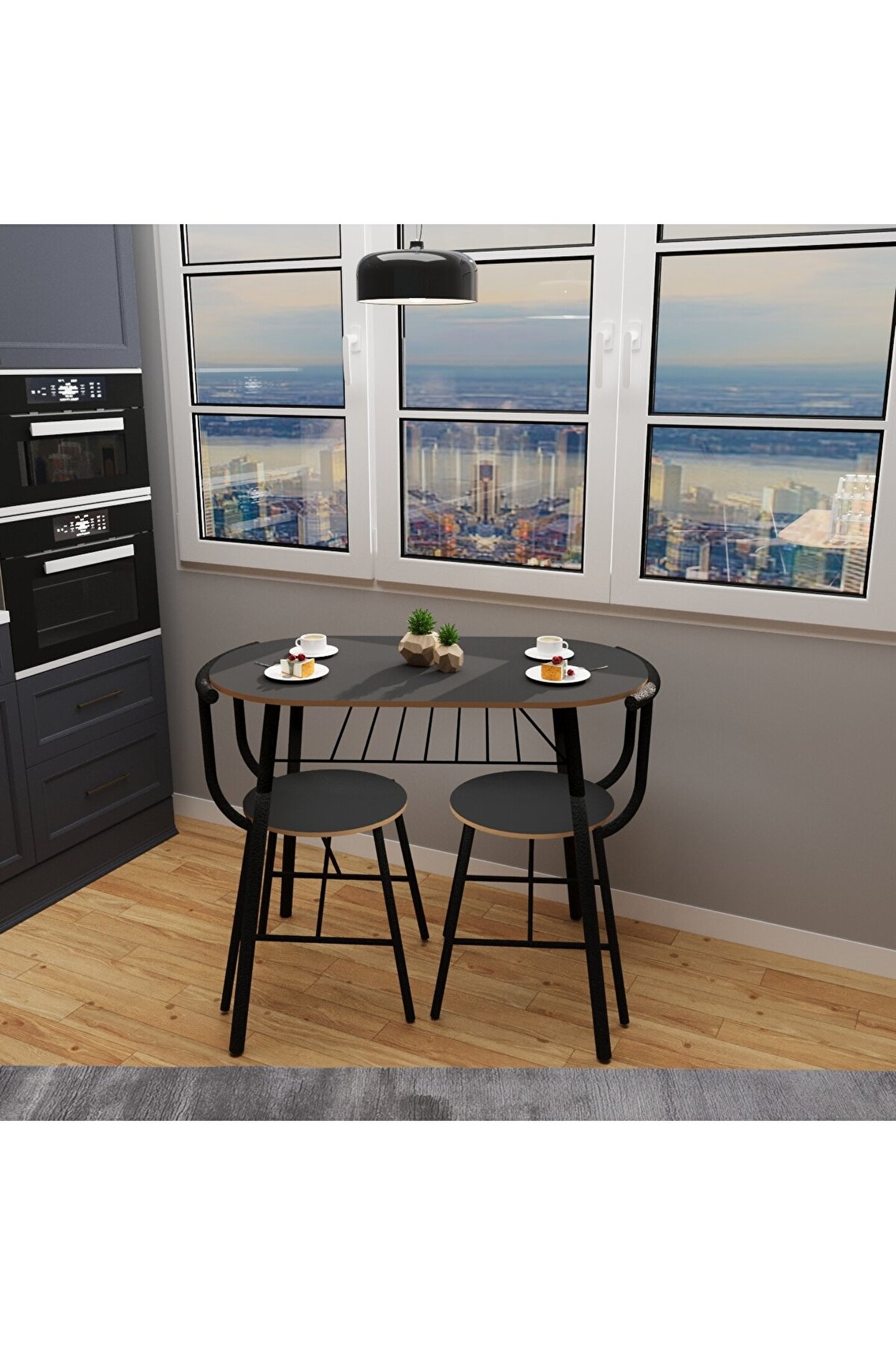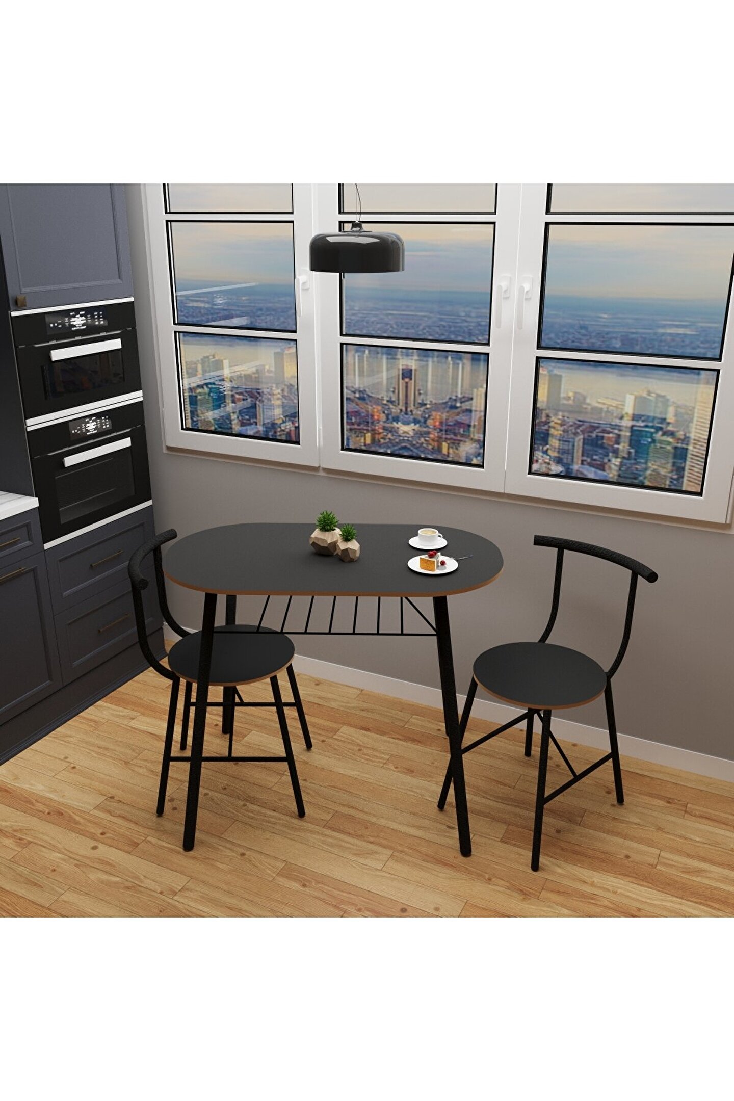 Mutfak Masa Sandalye Takımı 2 Kişilik Masa Sandalye Seti Füme, modern ve şık duruşu ile kullanıcıları anında etkileyen bir settir. Trend dizaynı ile muhteşem bir atmosfer yaratan set, iç mekanların havasını kolayca değiştirir ve beklentinizi maksimum oranda karşılar.