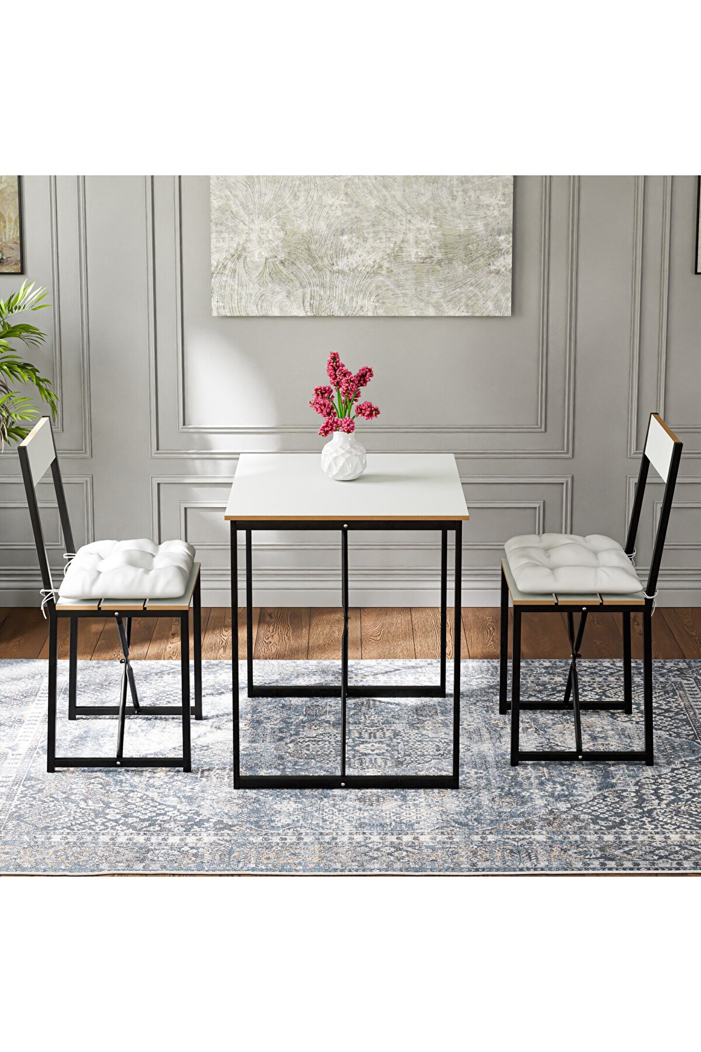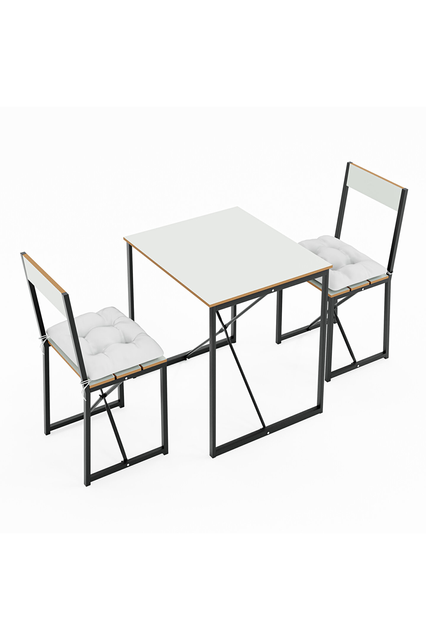 Mutfak Masası Minderli 2 Kişilik Balkon Masa Takımı Beyaz 1493