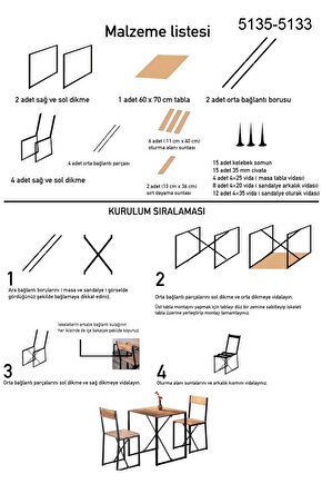Atlantik mutfak sandalyesi demonte olarak gönderilir. Fakat kurulumu oldukça basittir ve herkes kolaylık kurulum yapabilir.