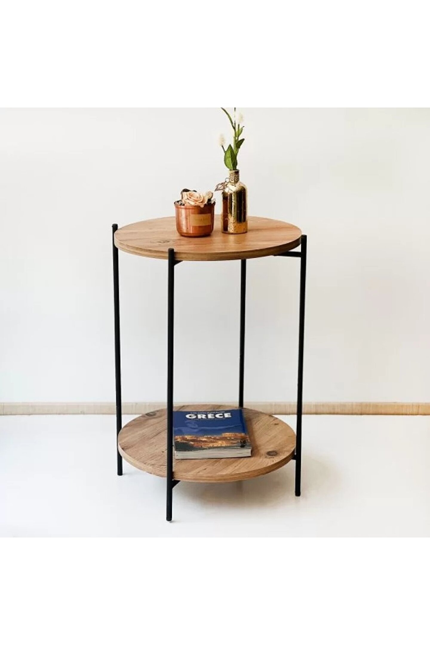 Yuvarlak Orta Sehpa Dekoratif Zigon Sehpa 1114, sahip olduğu özelliklerle öne çıkar. Sehpanın yuvarlak şekli ve ideal ölçüleri kullanışlıdır. Yüksekliği 60 cm, sunta çapı 40 cm olan bu sehpa, hem geniş bir kullanım alanı sunar hem de zarif bir görünüm sağlar. İki raf arası yükseklik 45 cm olup, alt kısımda ekstra depolama alanı sunar. Bu alan, kitaplarınızı, dergilerinizi veya dekoratif objelerinizi düzenli bir şekilde saklamanızı sağlar.