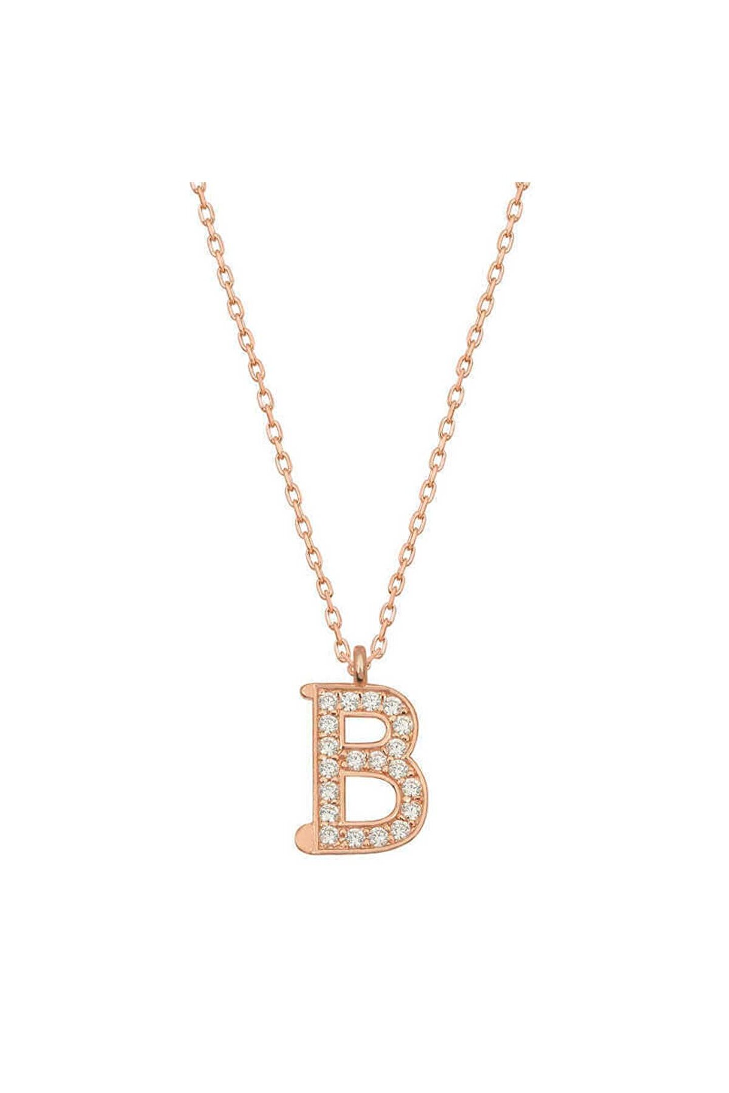 925 Ayar Gümüş Rose B Harfi Kadın Gümüş Kolye