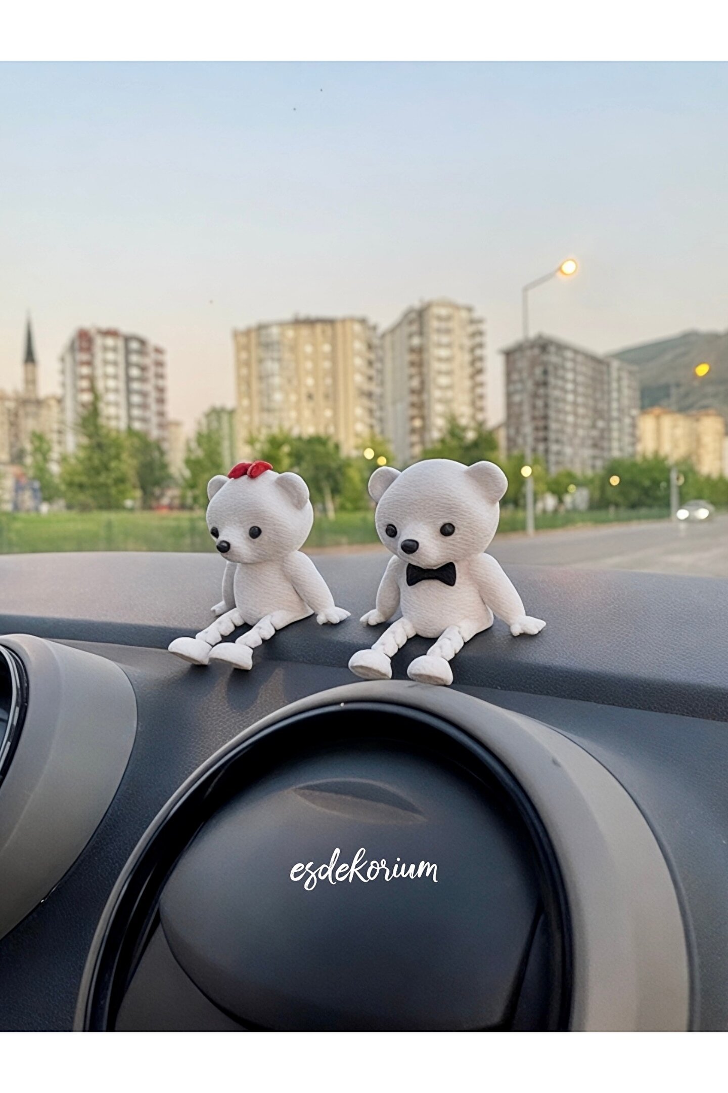 Aracınızda sıcak, sevimli ve zarif bir dokunuş yaratmaya hazır mısınız? @esdekorium farkıyla tasarlanan bu çiftli ayıcık seti, araç torpidosu başta olmak üzere masa, raf ya da vitrin gibi alanlarda kullanabileceğiniz özel bir dekoratif üründür.; Detaylı tasarımı, minimal boyutu ve sade şıklığı ile bulunduğu ortama nostaljik ama zarif bir hava katar.;