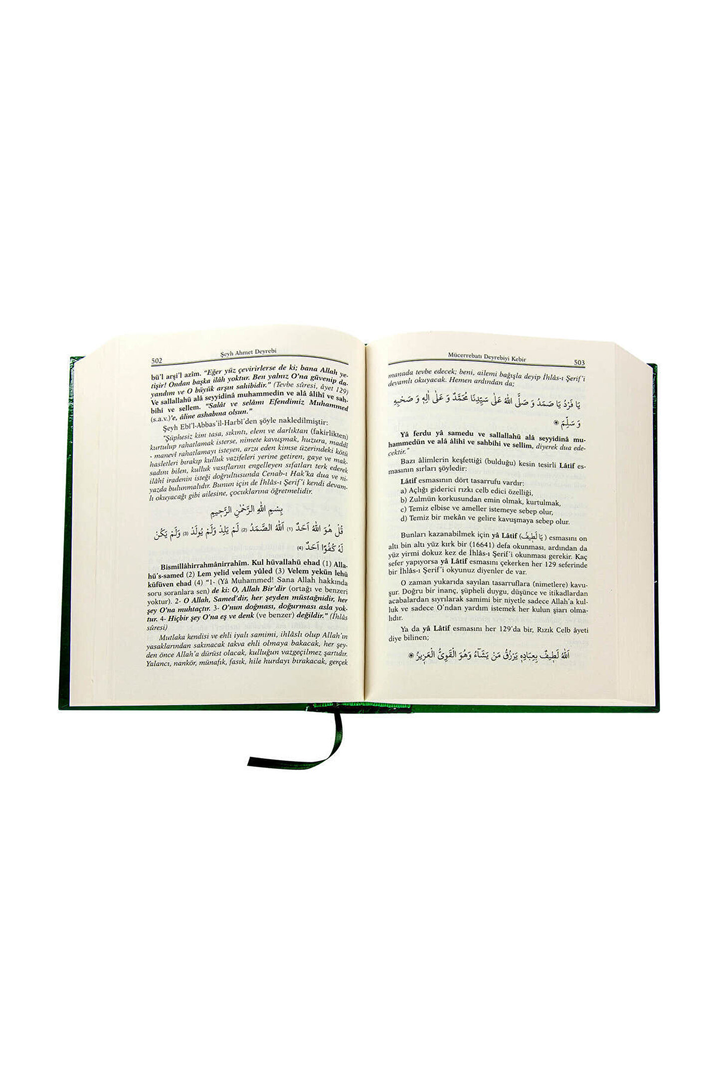 Mücerrebatı Deyrebiyi Kebir "Övülmüş Şerefli Mülkün Anahtarı Diye İsimlendirilmiş. Allahın Kulları Çok Faydalanmıştır. *MÜELLİF" NOT: Kitapta Dua Ayet ve Havas Uygulamaları Arapça Türkçe Meali ve Okunuşları İle Birlikte Faziletleri ve Uygulama Şekilleri Türkçe Açıklama Olarak Yer Almaktadır. Yazar: İmam Şeyh Ahmet Deyrebi Hazırlayan / Tercüme: H. Mustafa Varlı / Mısır El Ezher Üniversitesi Mezunu / Seyfettin Oğuz Sayfa Sayısı: 976 Boyut: 17 x 24 cm Basım Yeri: İstanbul Basım Tarihi: 2018 Kapak Türü: Ciltli Kağıt Türü: Kitap Kağıdı Dili: Arapça, Türkçe Kitaptan Bulunanlardan Bazıları: Besmele'nin Zikrinde Bazı Havas Hassaları ve Menfaatler Vardır; Fatiha Suresinin Havassı ve Zikir Usulleri Bunun Faydaları; Ayetel Kürsi'nin Zikir ve Havaslarının Faydaları; Tedavi Şifa Bulma Yöntemlerinin Özellikleri; Yasin Suresi Havası ve Faydalanmanın Yararları; Mülk Suresi Havası; Vakıa Suresi Havası ve Sırları; Kadir, İnşirah, Fil, Asr, Hümzeze, Kevser, Enam, Hud, Yusuf, Rad, Hicr, Nahl, Suretün, Neml, İhlas, Muaziveteyn Sureleri, Mürselat, İnşikak Ve Diğer Bazı Surelerin Sırları ve Havasları; Çok Çeşitli Faydaları Olan Zikirler; Baş Ağrısı ve Zararlarından Kurtulmak; Zikri Hicb'den Faydalanmak; Düşük Yapan Kadınlar İçin Formül; Rıhı Ahmer; İns Cin ve Diğer Yaratıklardan Korunmak; Hacamat ve Şifası; Rukye ve Şifası; Çocukların Ağlaması; Erkek ve Kız Çocuk İsteyenler İçin Dualar; Doğum Yaparken Zorlanma; Hastaların Bütün Bedenine Sirayet Eden İlletlerin Tedavi Halleri; Seyahat ve Ticaret İçin Korunma; Merbut Bağlanma Haline Taalluk Eden Mutlu Bir Yuva İçin Faydaları Aile Bağlarının Güçlendirilmesi; Salib Ehlinin Kralların Faydalandığı Hermel; Unutkanlık Zeka Zayıflamasını Önleme Metodu; Hafızayı Kuvvetlendirmek ve Ezber Yapmak İçin Okunur; Unutma Hastalığının Tedavisi; Meşhur Olan Rukyeyi Mübarekeden Faydalanma Yolları; Çalıntı Mal, Yitik Mal veya Kaçak Çocuk Köle veya Eşyanın Bulunma Yöntemleri; Hırsızı Ortaya Çıkarmak İçin; Nahıs Günler; VE DAHA FAZLASI YILLARDIR MÜCERREB DENENMİŞ UYGULAMALAR OLAN BU KİTAPTA...;