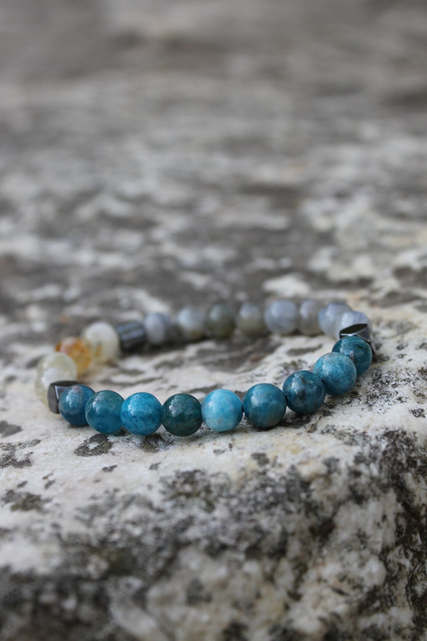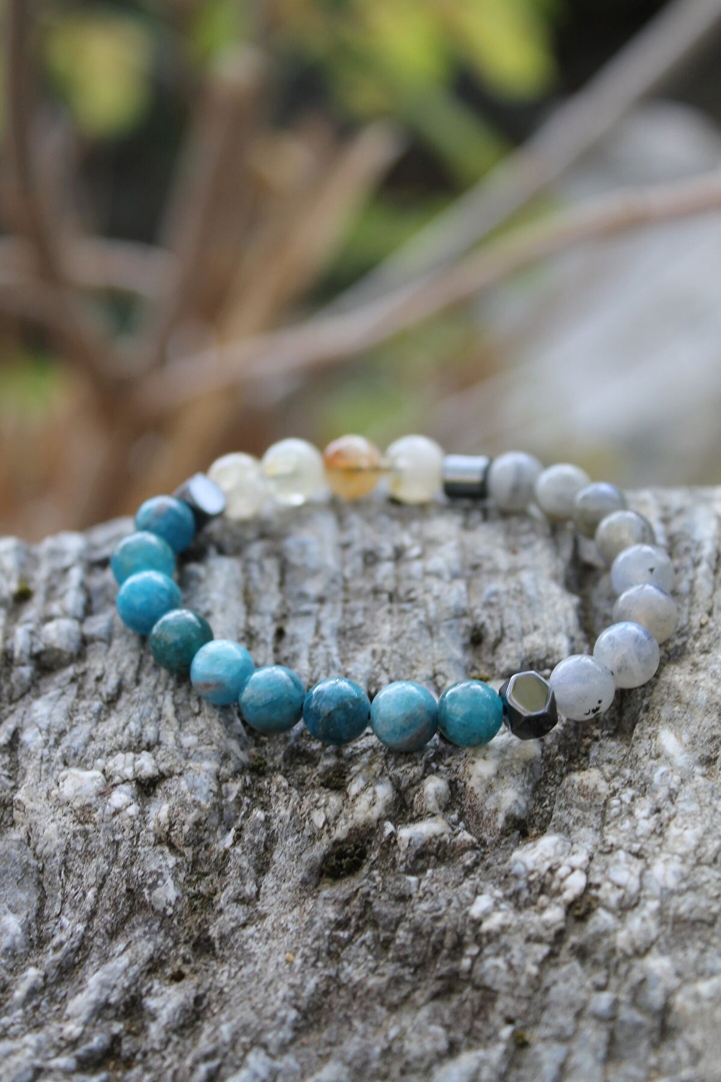 Çocuklar için özel olarak tasarlanmış, onların enerjik ve canlı ruhunu yansıtan bir aksesuar; Doğal taş kullanımı sayesinde her bileklik benzersiz ve özgün bir görünüm sunar; Apatit ve labradorit gibi nadir bulunan ve değerli taşlardan oluşan bileşenlerle zenginleştirilmiş, doğanın zarafetini bileklerinize taşır; Okul başarılarını simgeleyen bu bileklik, çocukların motivasyonunu artırırken aynı zamanda şıklıklarını da tamamlar;