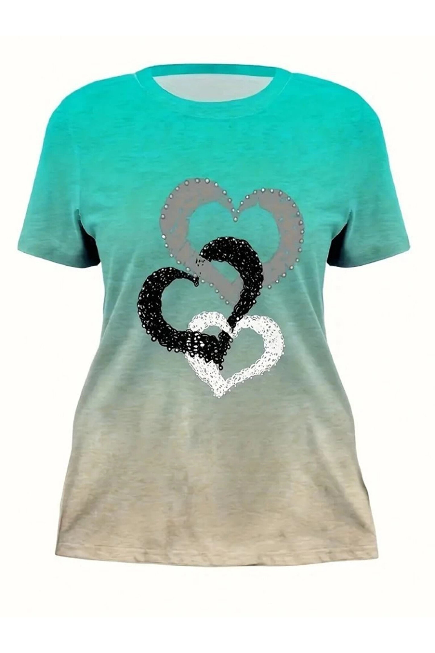 Kadın Kısa Kollu Bisiklet Yaka Kalp Baskılı Süprem Bluz