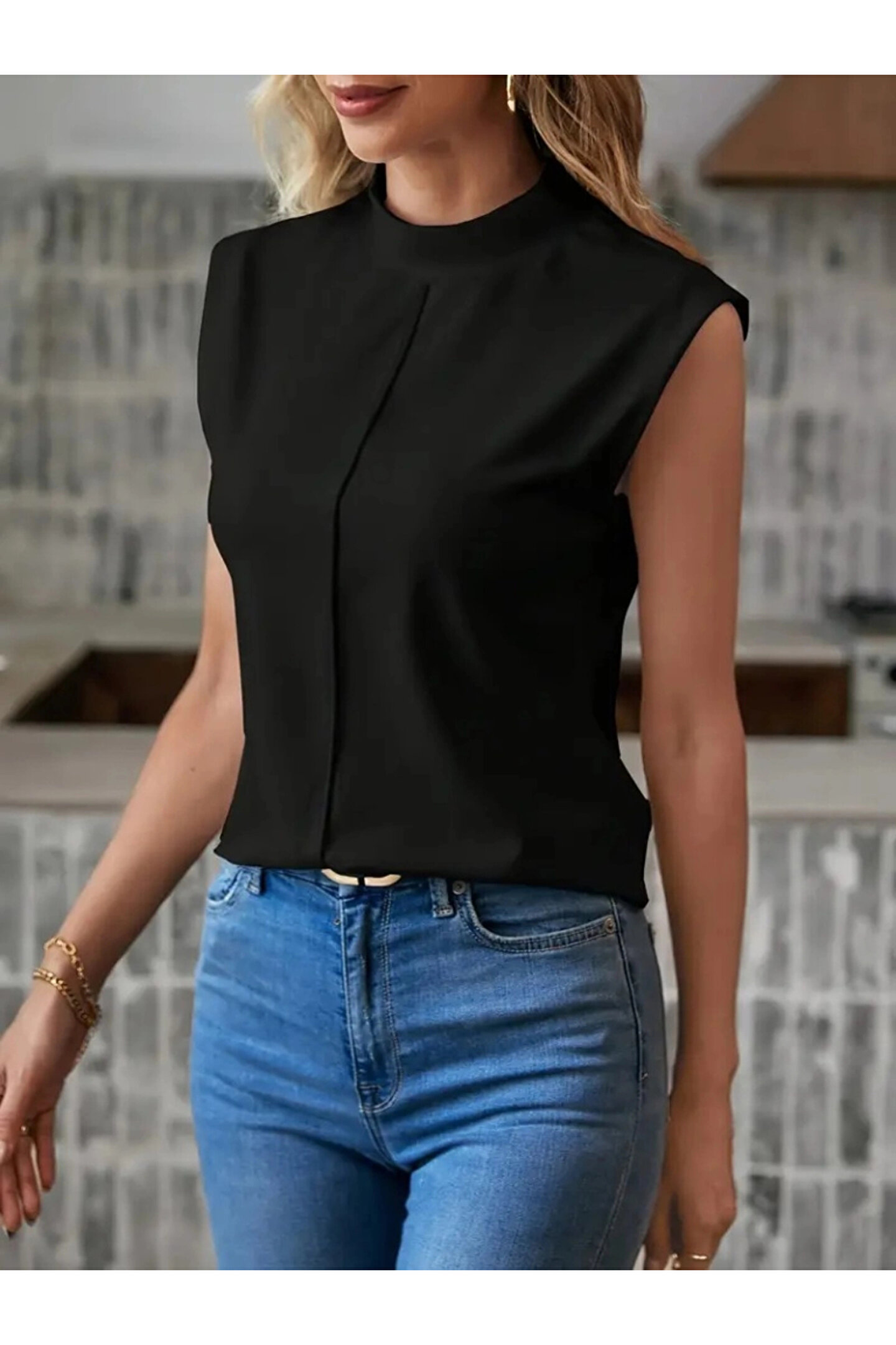 ESSE BUTİK Kadın Kısa Reglan Kollu Yarı Balıkçı Yaka Ithal Krep Bluz