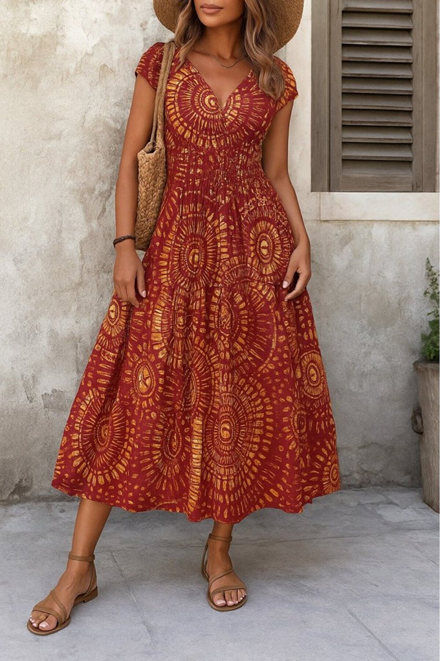 Kadın Kısa Yarasa Kanat Kollu V Yakalı Beli Büzgülü Süprem Elbise