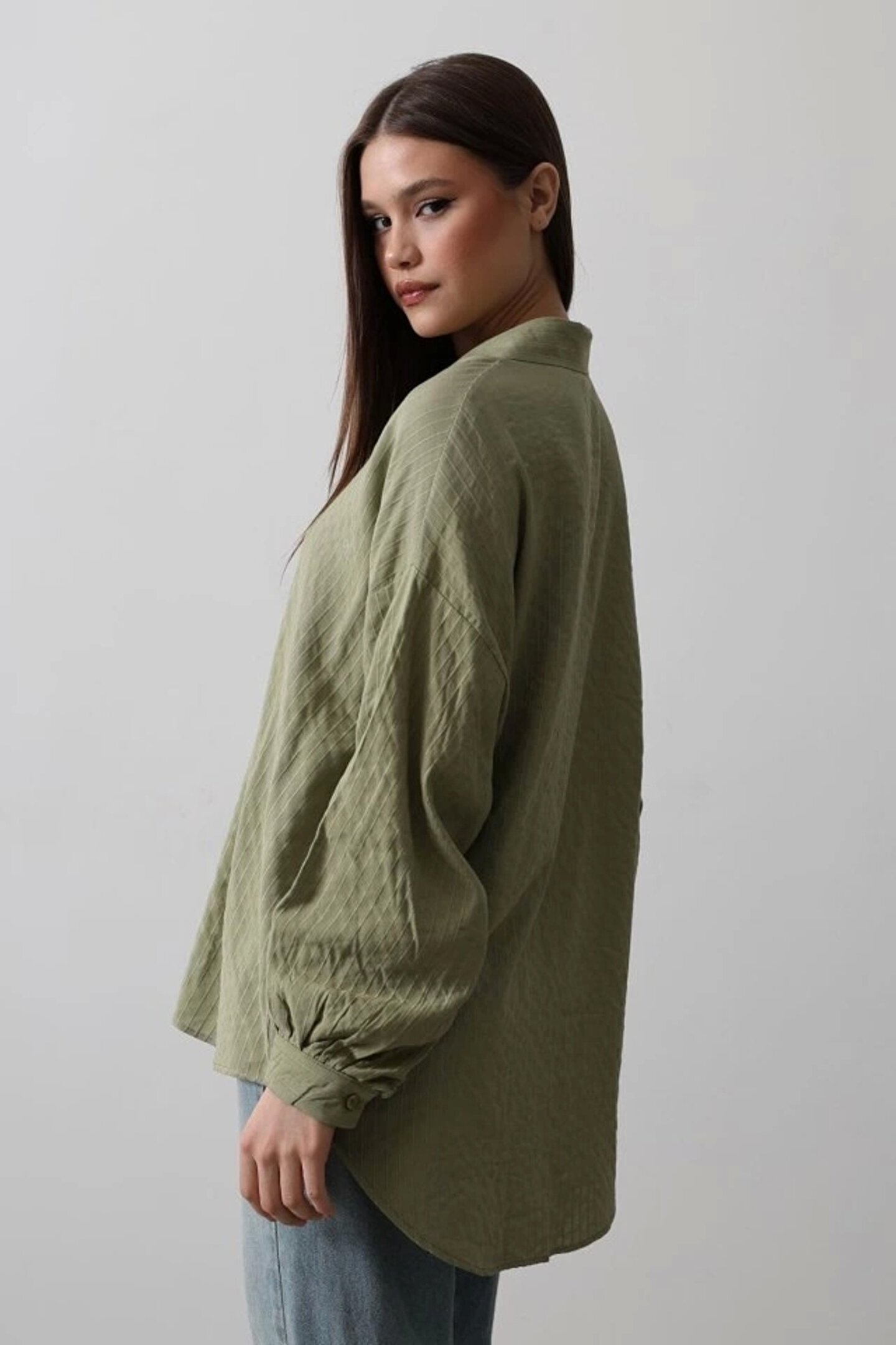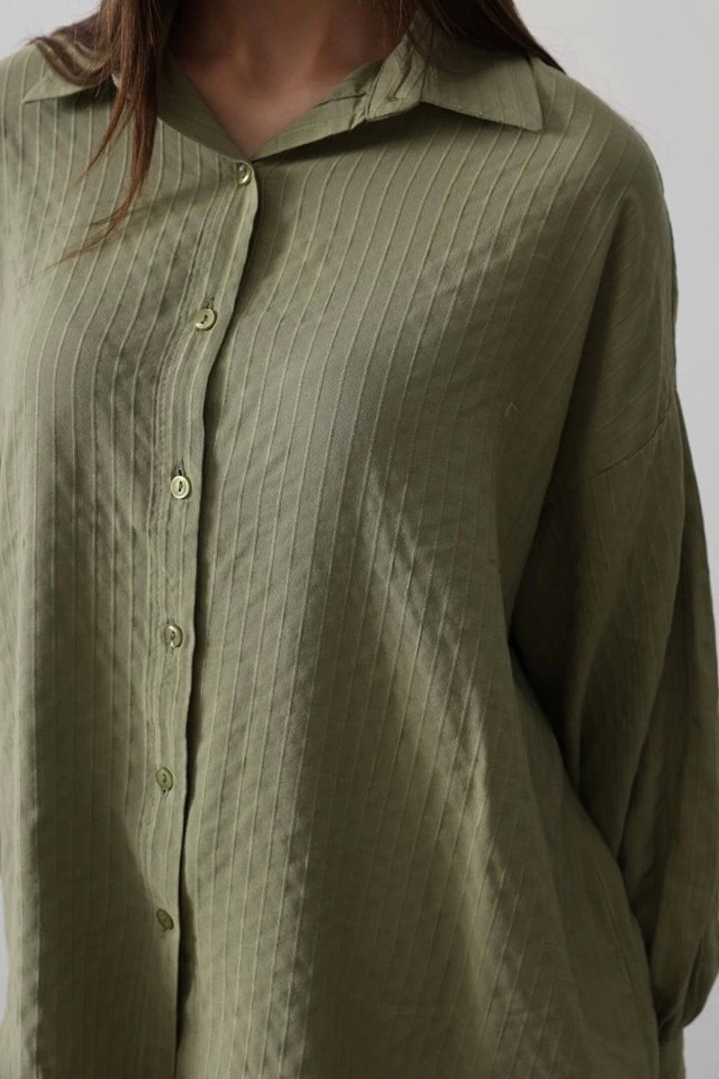 Çizgili Uzun Kol Gömlek - Haki