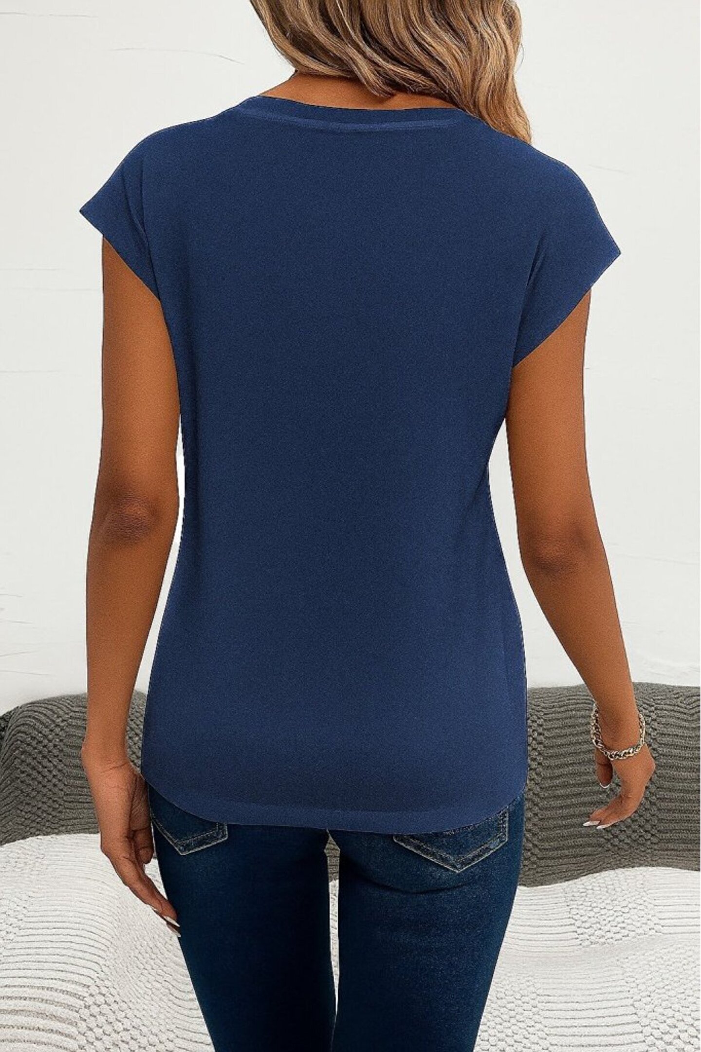 Kadın Kısa Kollu V Yakalı Kalp Desen Viskon Bluz