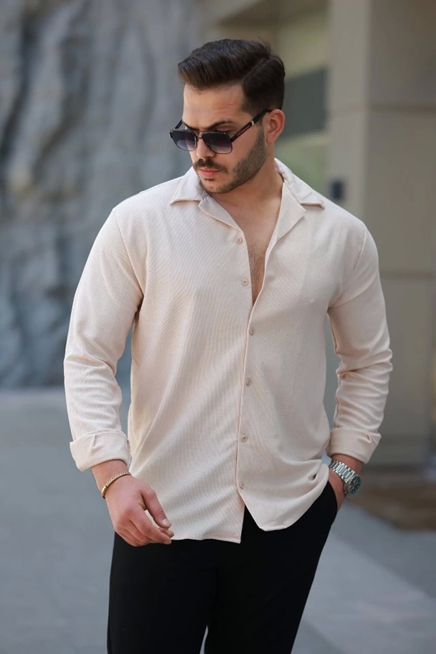 Erkek Kadife Dokulu Uzun Kollu Gömlek