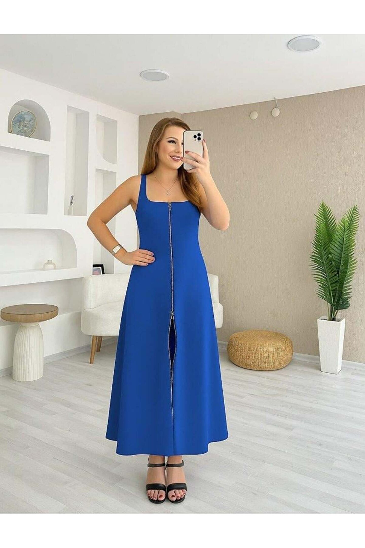 Kadın Askılı Kare Yaka önden Fermuarlı Geniş Kesim Janjan Krep Elbise