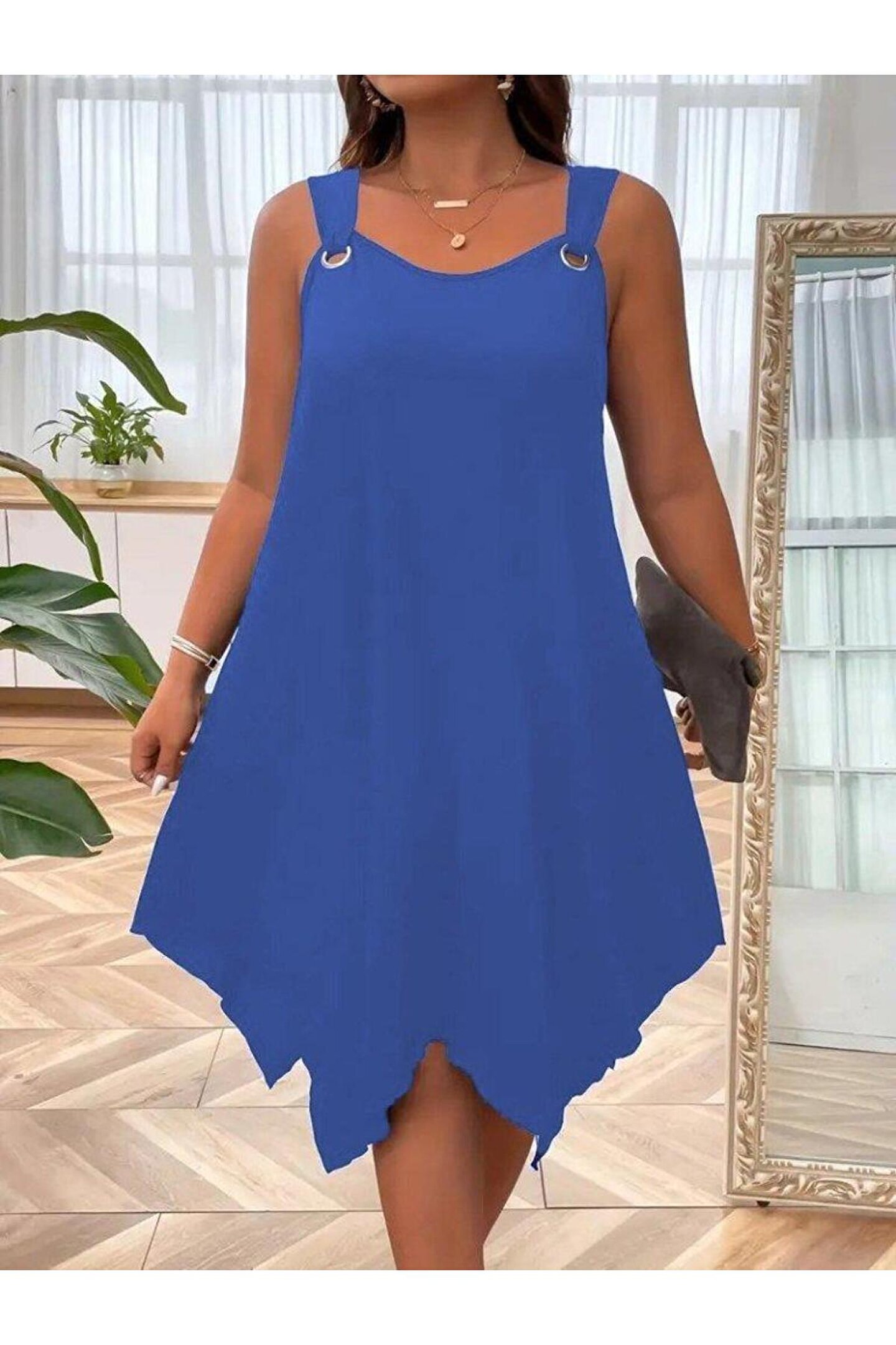Kadın Askılı Yuvarlak Yaka Kuş Gözü Detaylı Asimetrik Viskon Elbise