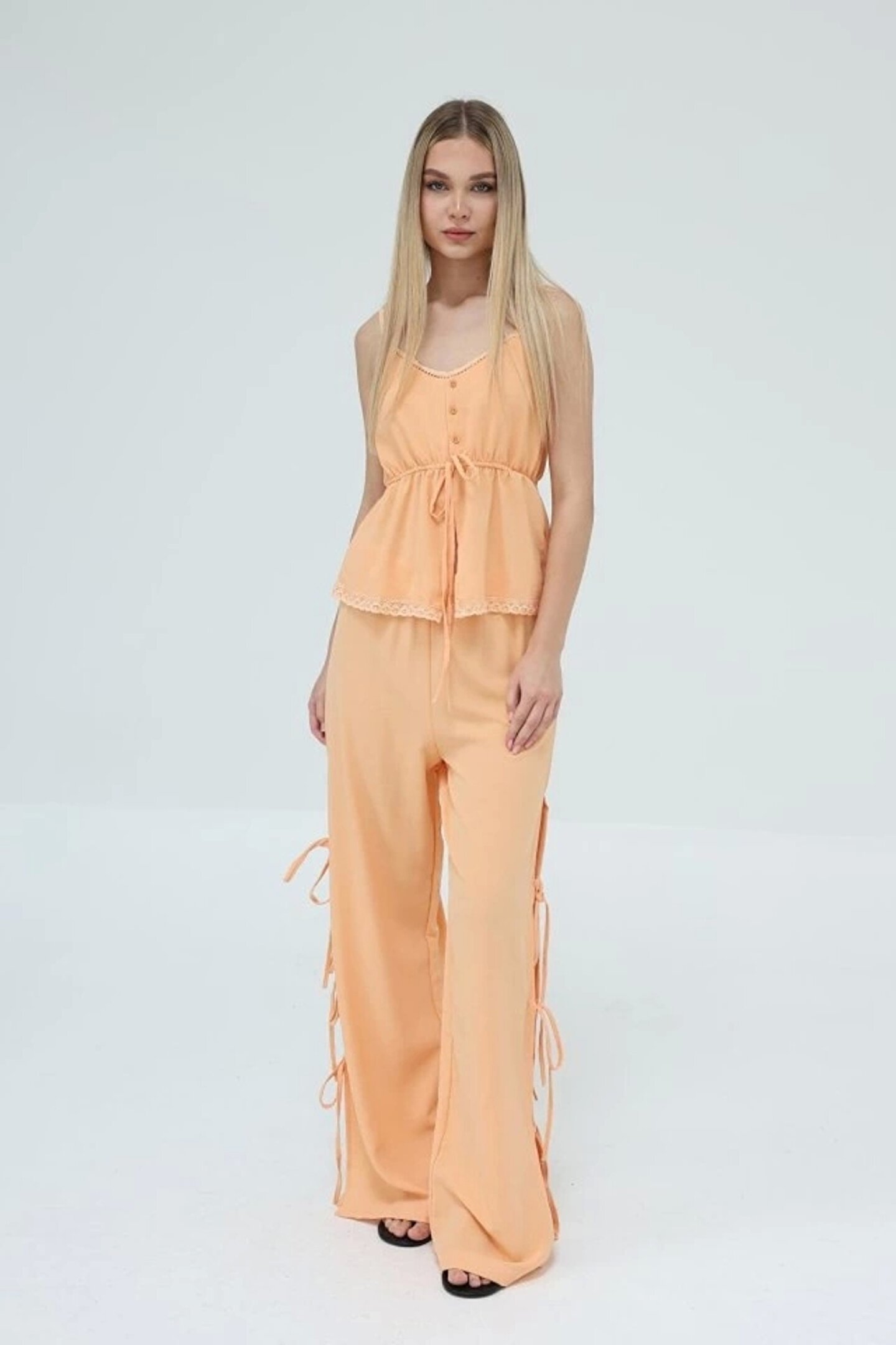 Fiyonklu Bluz Takım - Kavuniçi