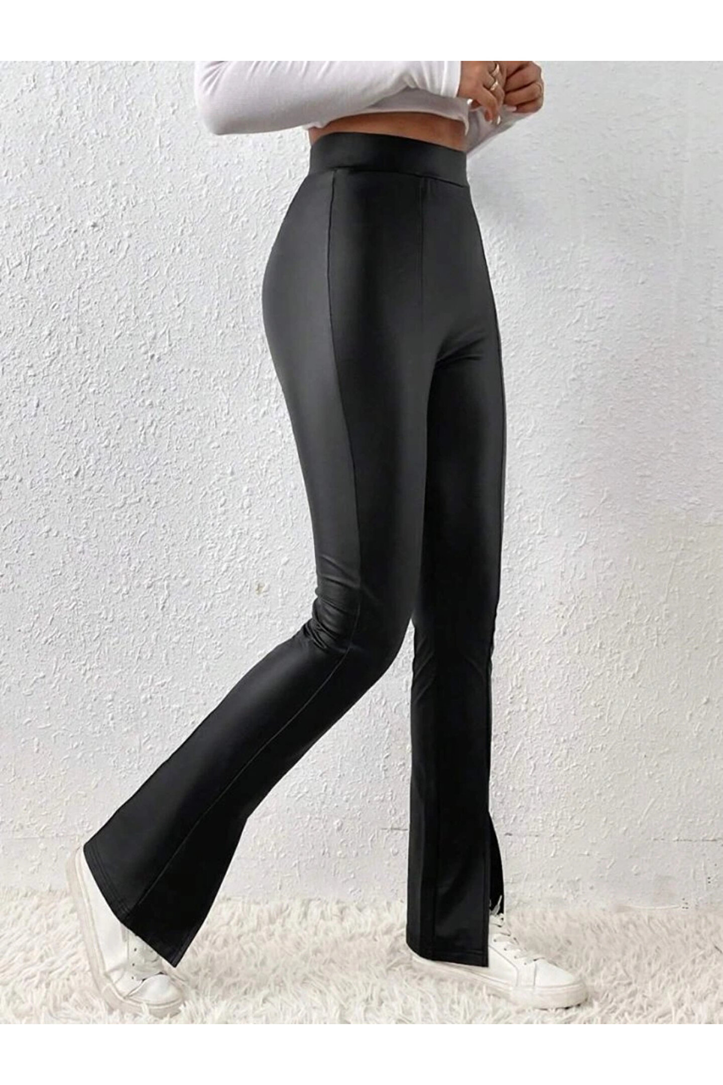 Kadın Yüksek Bel önden Yırtmaçlı Deri Tayt
