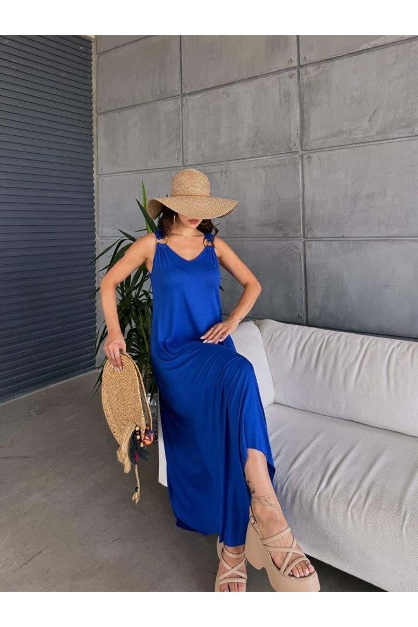 Evyora Kadın çan Dokuma Kumaş V Yaka Asimetrik Kesim Elbise