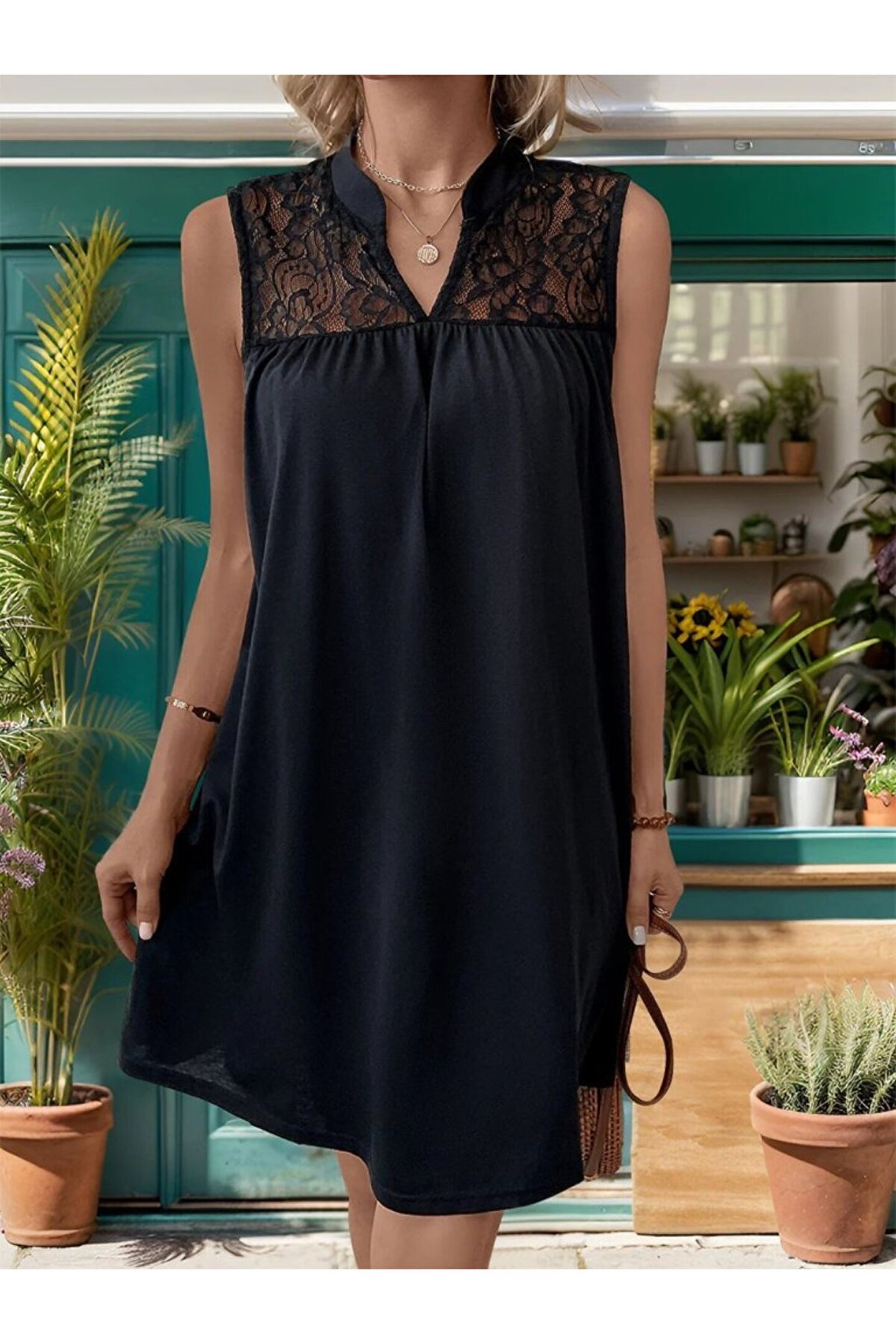 EYCAWEAR EQURİ Kadın Kolsuz V Hakim Yaka Dantelli Janjan Krep Elbise
